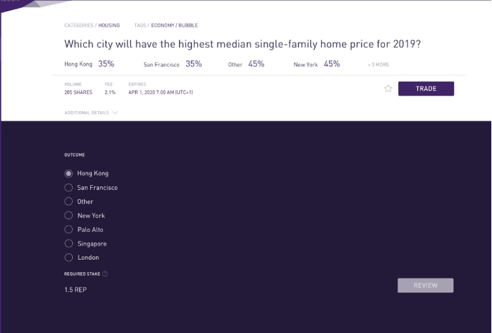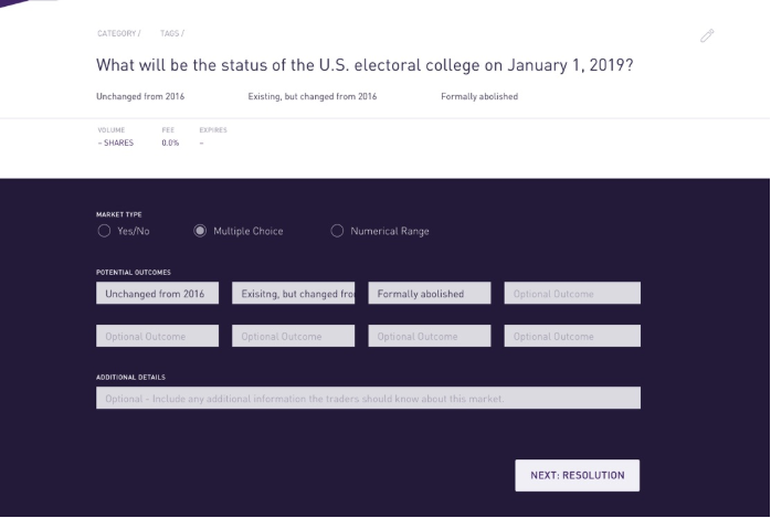 어거의 기본적인 예측 시장 플랫폼은 바로 이것입니다.