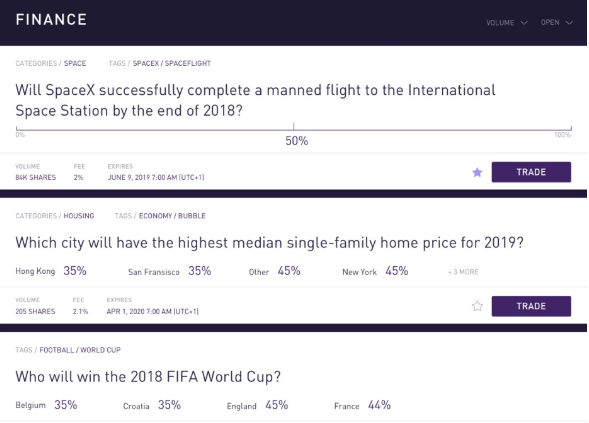 시장을 예측하는것이 아닌, 미래에 일어날 어떤 일이든 예측시장의 형태로 개설할 수 있습니다.