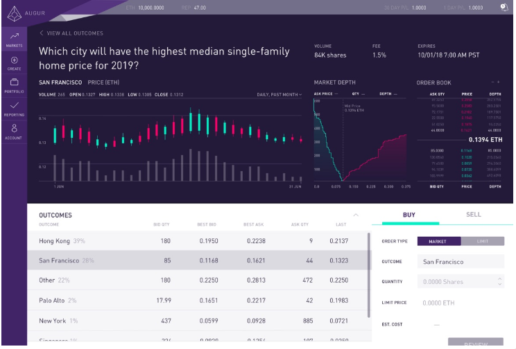 이더리움을 기반으로 만들어진 어거는 탈중앙화된 예측 시장 공유 플랫폼입니다.
