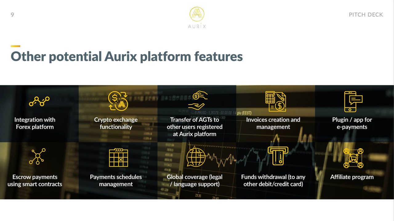 Aurix Token (AUR) is a utility token that has some features over and above simple payment functionality. AUR powers the overall Aurix ecosystem, giving the user particular benefits such as reduced fees on the platform.