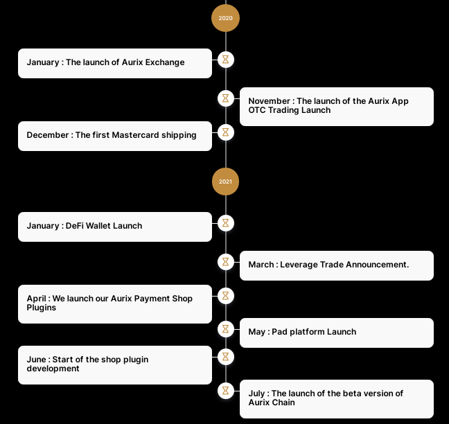 The Aurix Exchange roadmap consists of a number of stages, with the implementation phases. The following is the list of project’s major milestones.