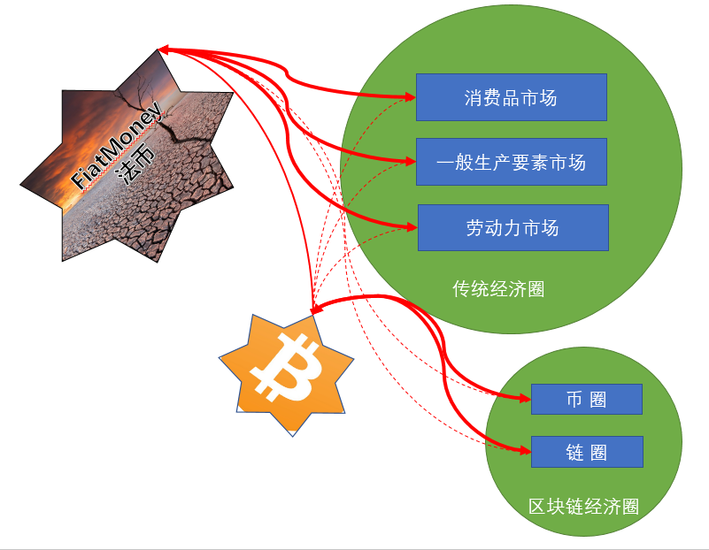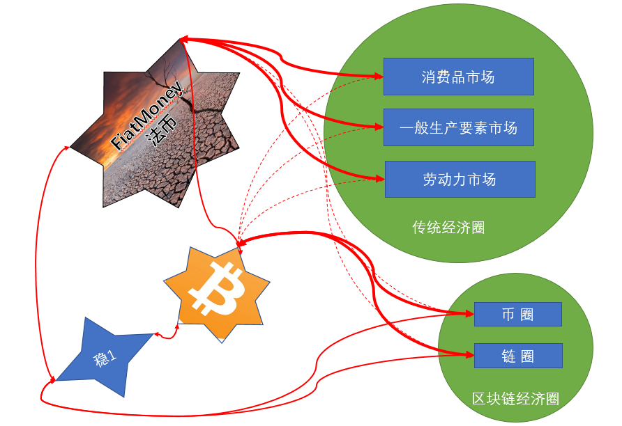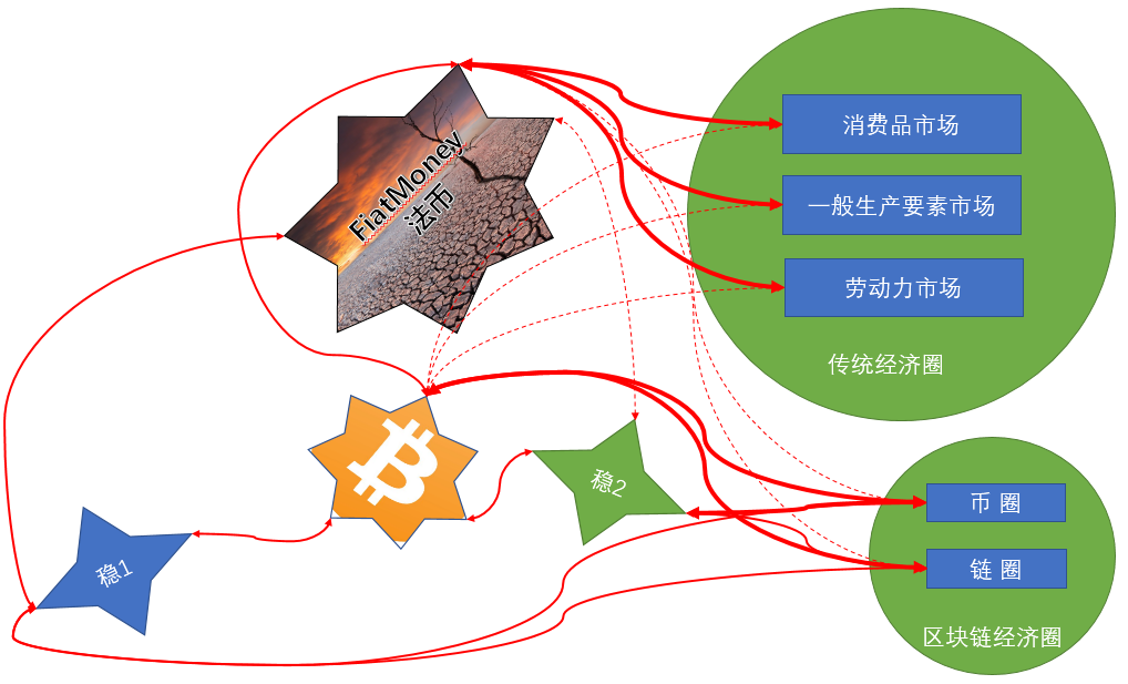 之后,随着更多人知道和认可比特币未来的理想,它的现值在攀升。它在没有实现其使命之前,首先成为一种完美“投机品”。这个投机市场的筹码足够分散,它不需要依赖任何特定的中心化机构来处理汇款,难以被监管彻底卡死。在政策限制法币现金直接参与交易的时候,稳定币这种法币代用品因此被市场需求。