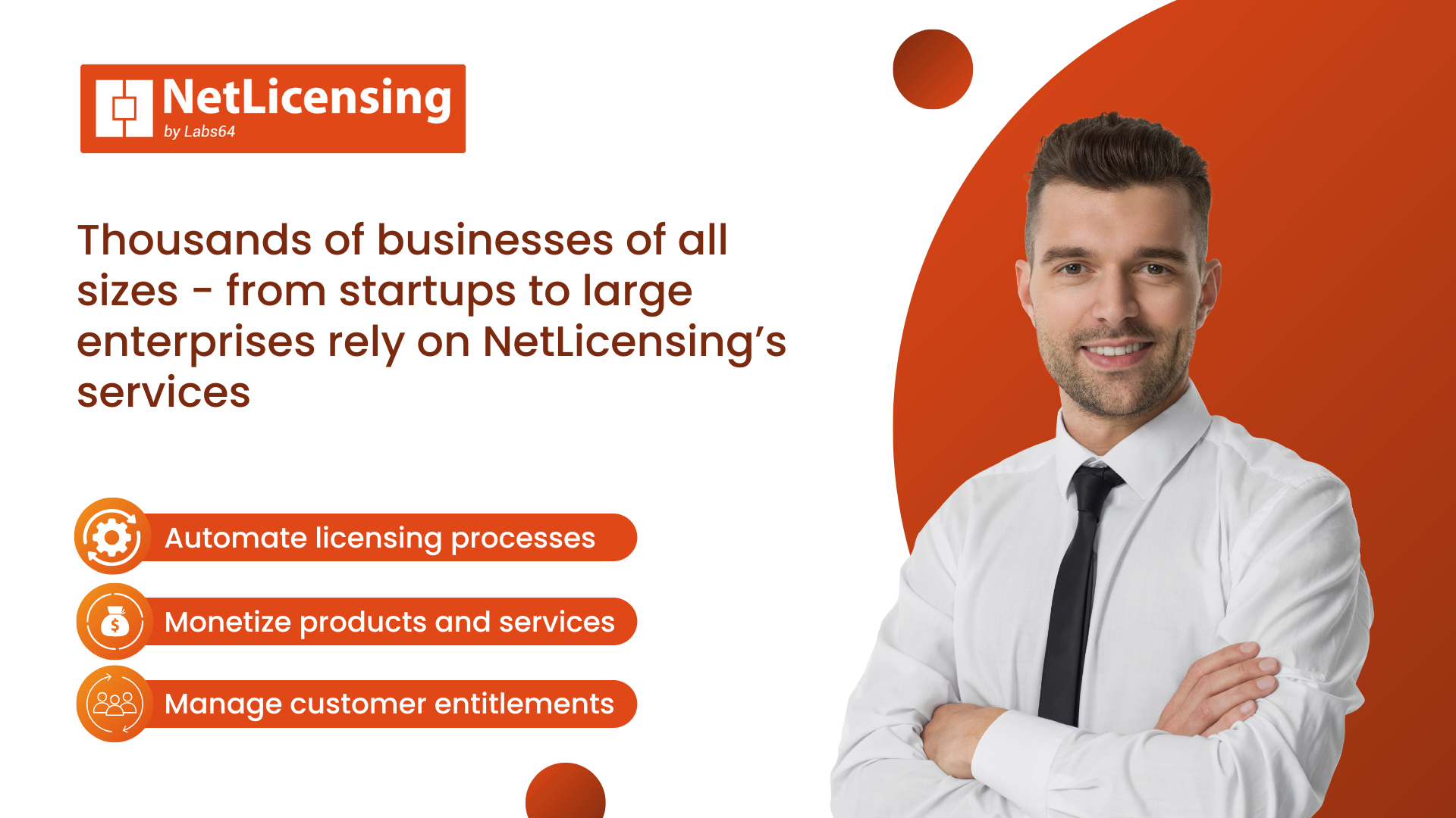 Thousands of businesses of all sizes—from startups to large enterprises—rely on #NetLicensing’s services and APIs to: