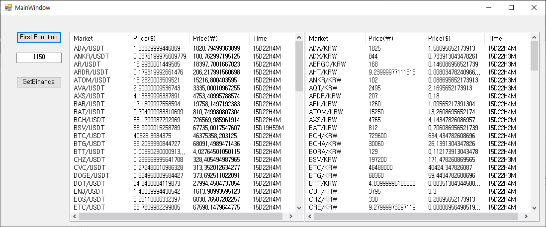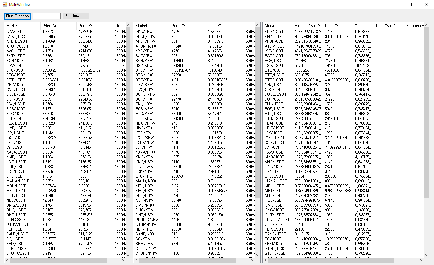 Development languages and tools are C#, WINFORM LIB, Visualstudio, and CCXT LIB!