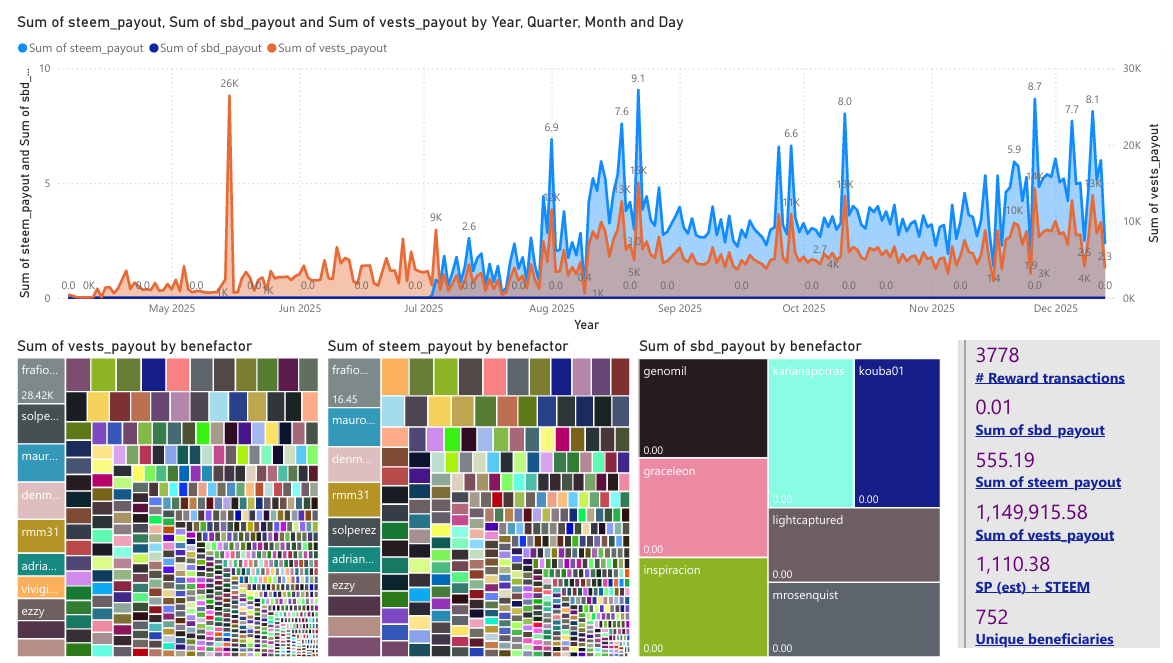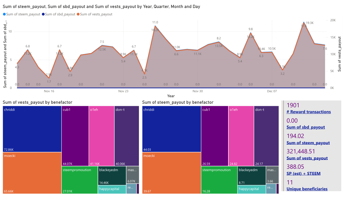 | Delegator beneficiary rewards ( STEEM * 2 ) | 1,153 STEEM | 388 STEEM |