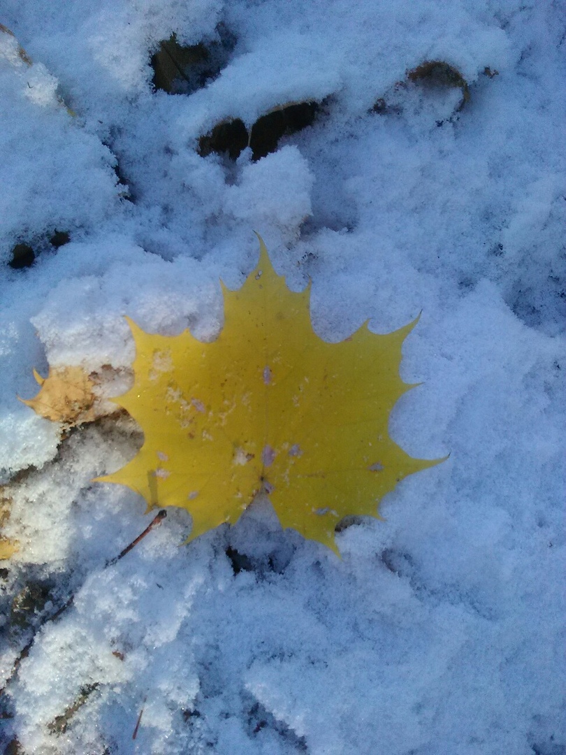 Colorchallenge wednesday yellowdenotaku (60)in #autumn • 7 years ago Maple yellow leaf on the snow, its the end of the autumn and start of the winter. #winter #nature #photo #photography