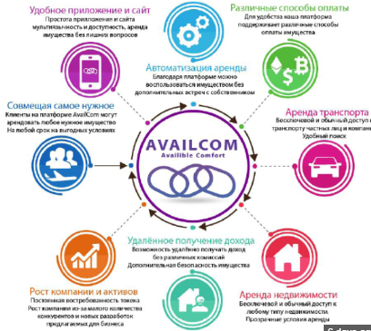 It is a blockchain for the automation of properties and cars renting based on the principles of equality of participants and blocking technology which in turn, employs thousands of projects involved in all spheres of people's lives. The platform is committed to the task of uniting private companies and individuals to engage in the rental of real estate and vehicles on the basis of a single platform that operates on blocking technology and united by one service. It gathers all the requested services in one place, facilitating their accessibility to the public aimed at introducing a method of payment for all types of services by available means, including crypto-currencies through its own payment system called AvailPay. This will provide the service with additional development and profit. The objective of the innovative block platform is the availability of the rental market for all segments of the population, improving the convenience of the service and securing transactions for both sides. AvailCom today not only support these functions but also develops new additional opportunities, using this technological innovation and corporate standards in an international project of real estate market which introduces its own designs then provide users with a decentralized platform, as well as standard voting functions through which they use and manage the platform by voting the participants who hold AVL tokens.