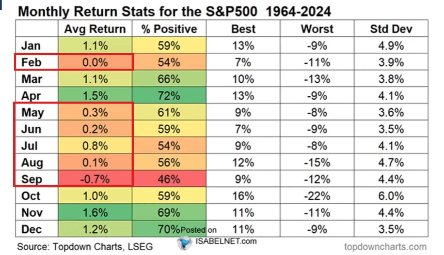 monthly return stats for s&p 500cancerdoctor (86)in AVLE 일상 • 3 months ago 2월 조심해야겠네.. #kr #avle-pool #economy #nasdaq #krsuccess