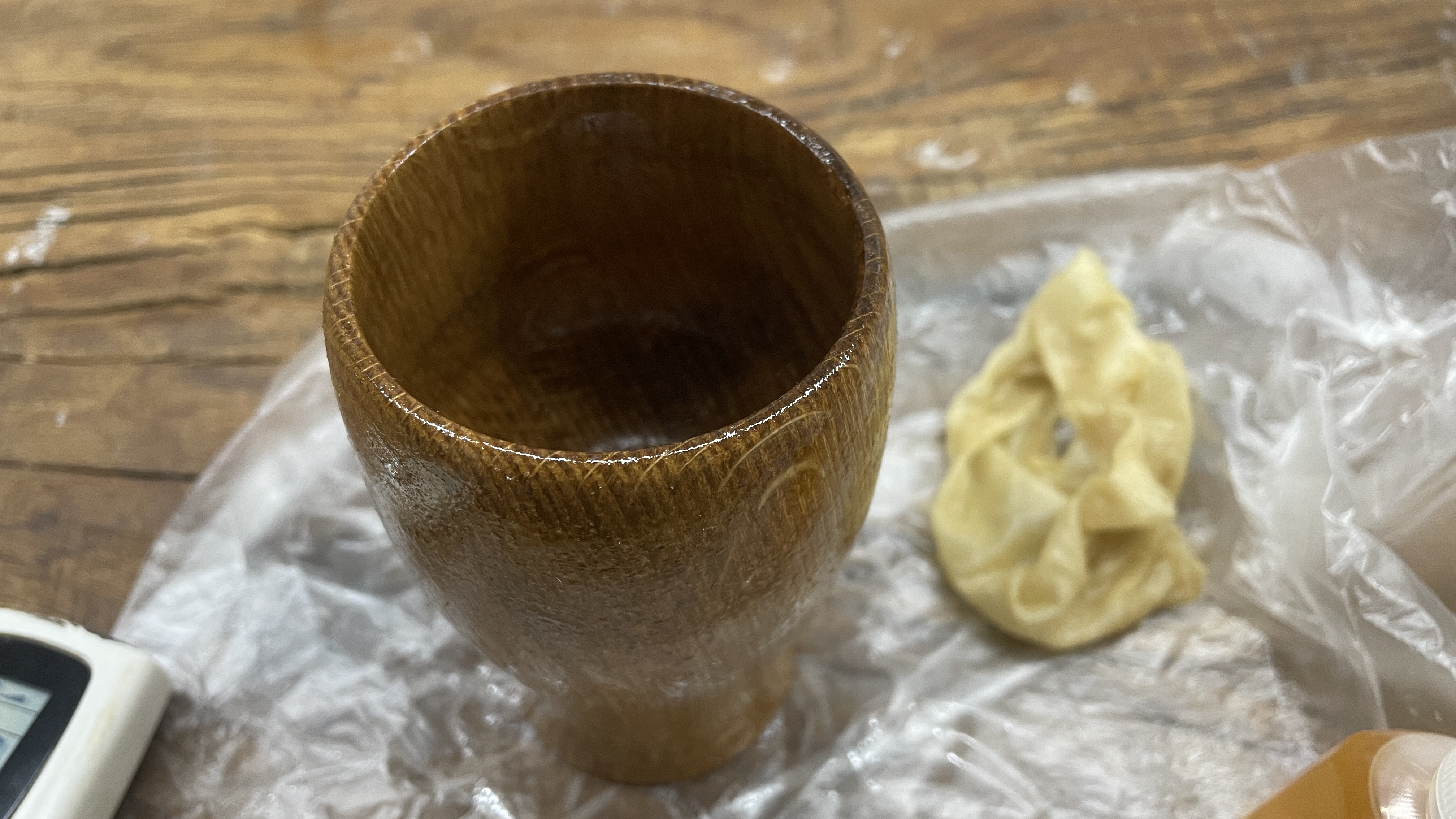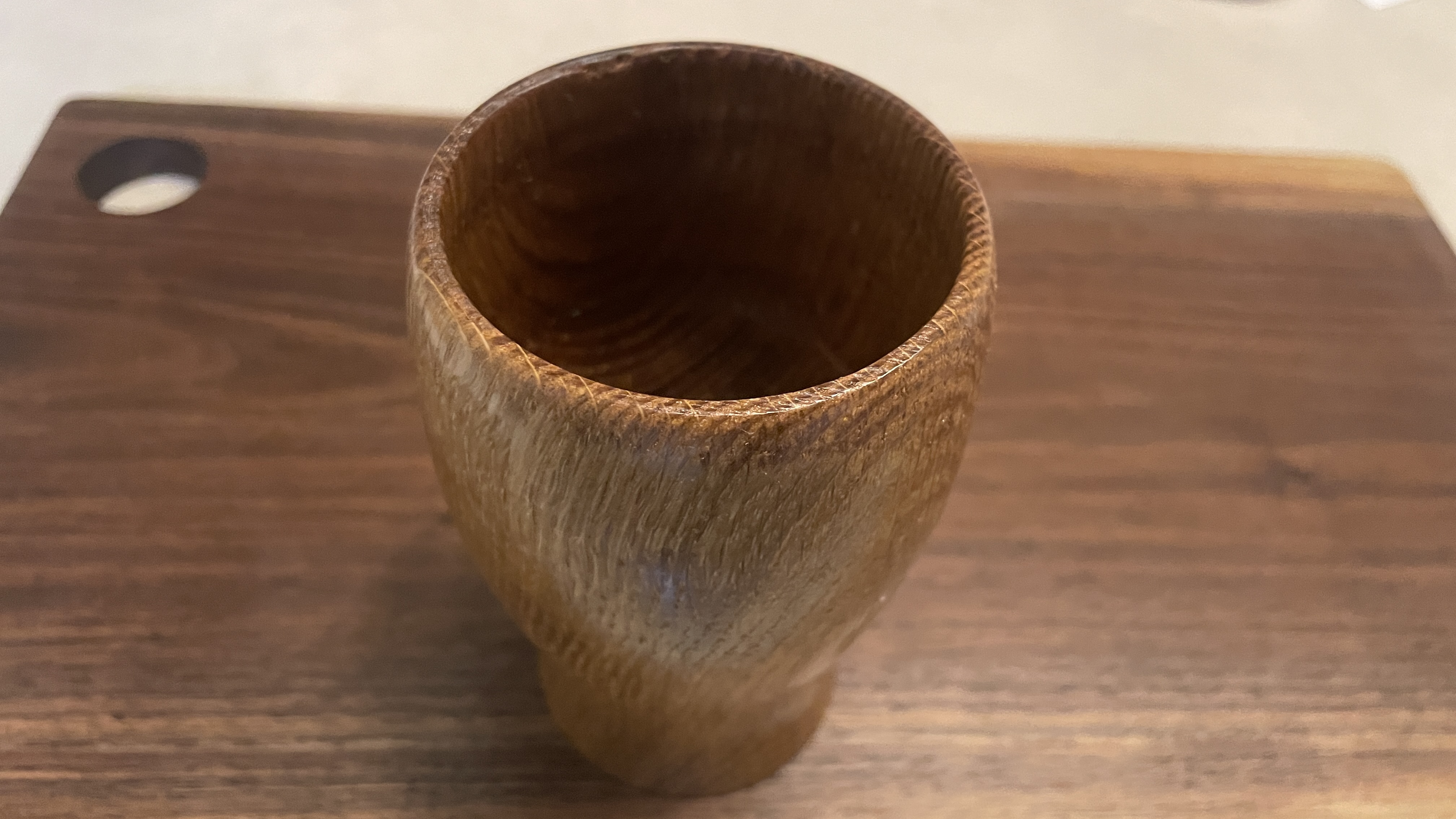 전에 사놓은 오크로 처음 시도한 나무 컵.