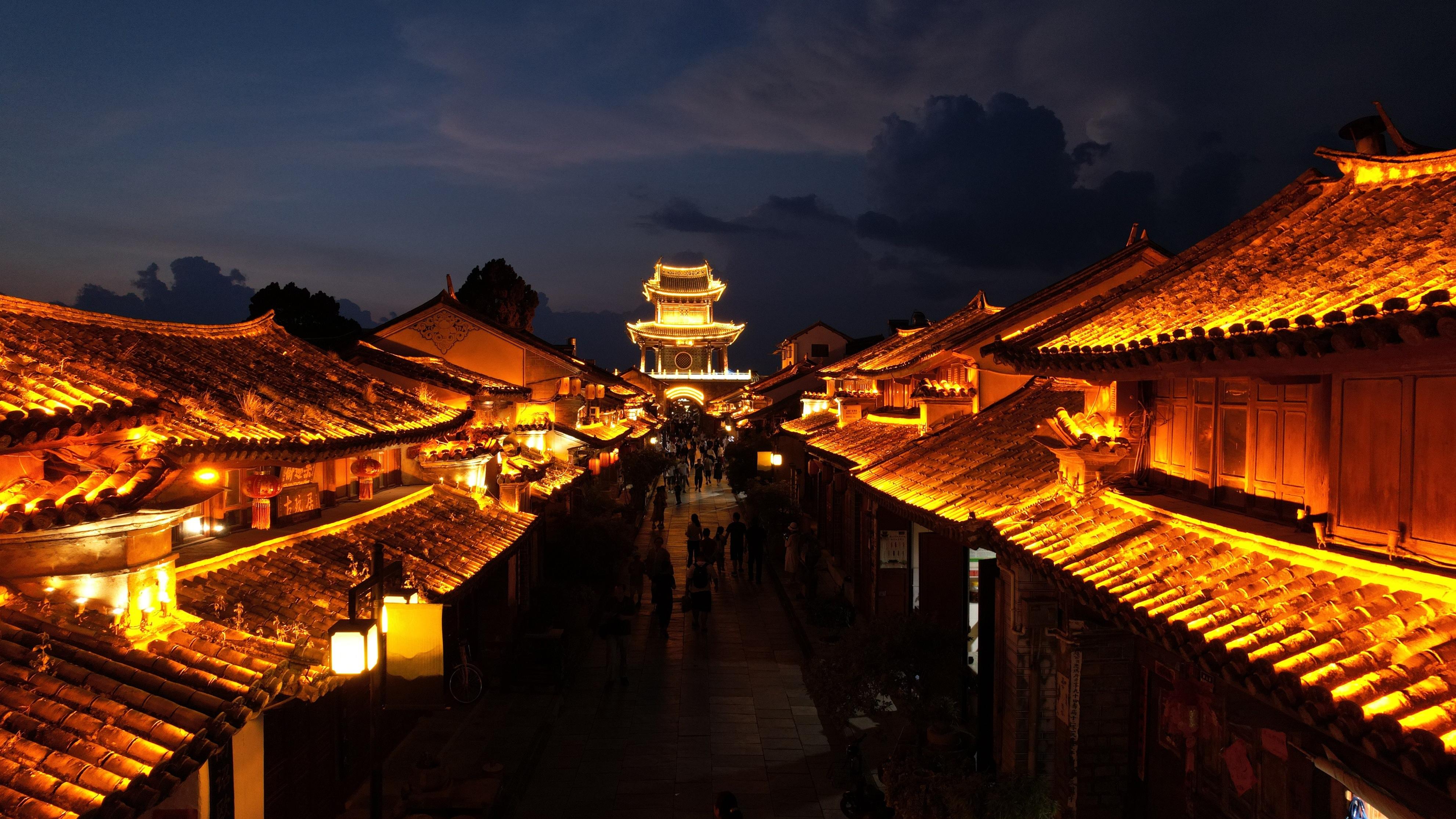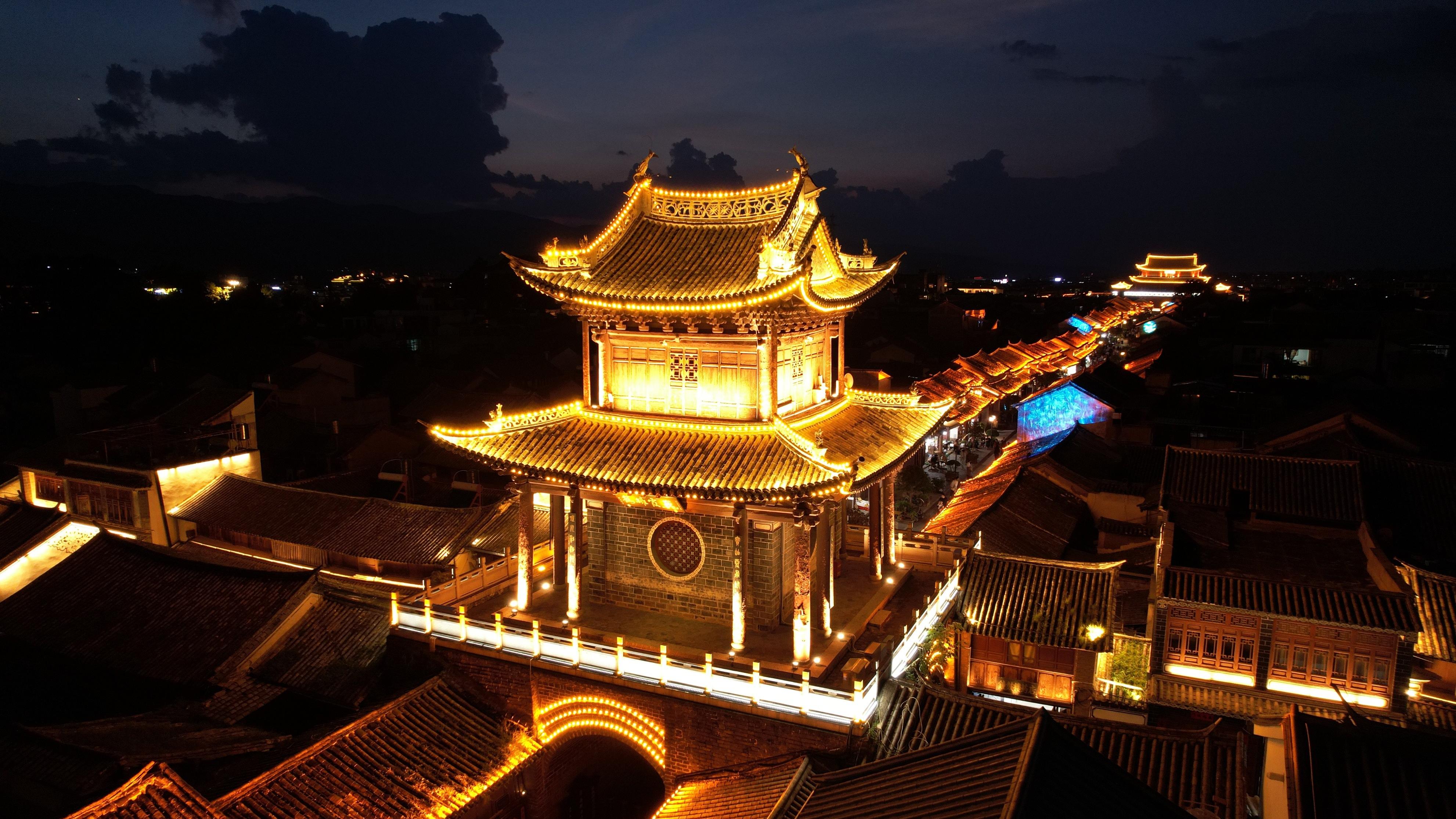 중국의 운남성에 위치한 아름다운 명소, 성궁루. 황혼이 지는 저녁, 성궁루의 야경은 정말 아름다웠습니다. 붉게 물든 하늘과 함께 타워의 실루엣이 어우러져 한 폭의 그림 같은 풍경이 펼쳐졌죠. 이 멋진 순간을 놓치고 싶지 않아 저는 곧바로 드론을 띄워 그 장면을 찍기 시작했습니다.