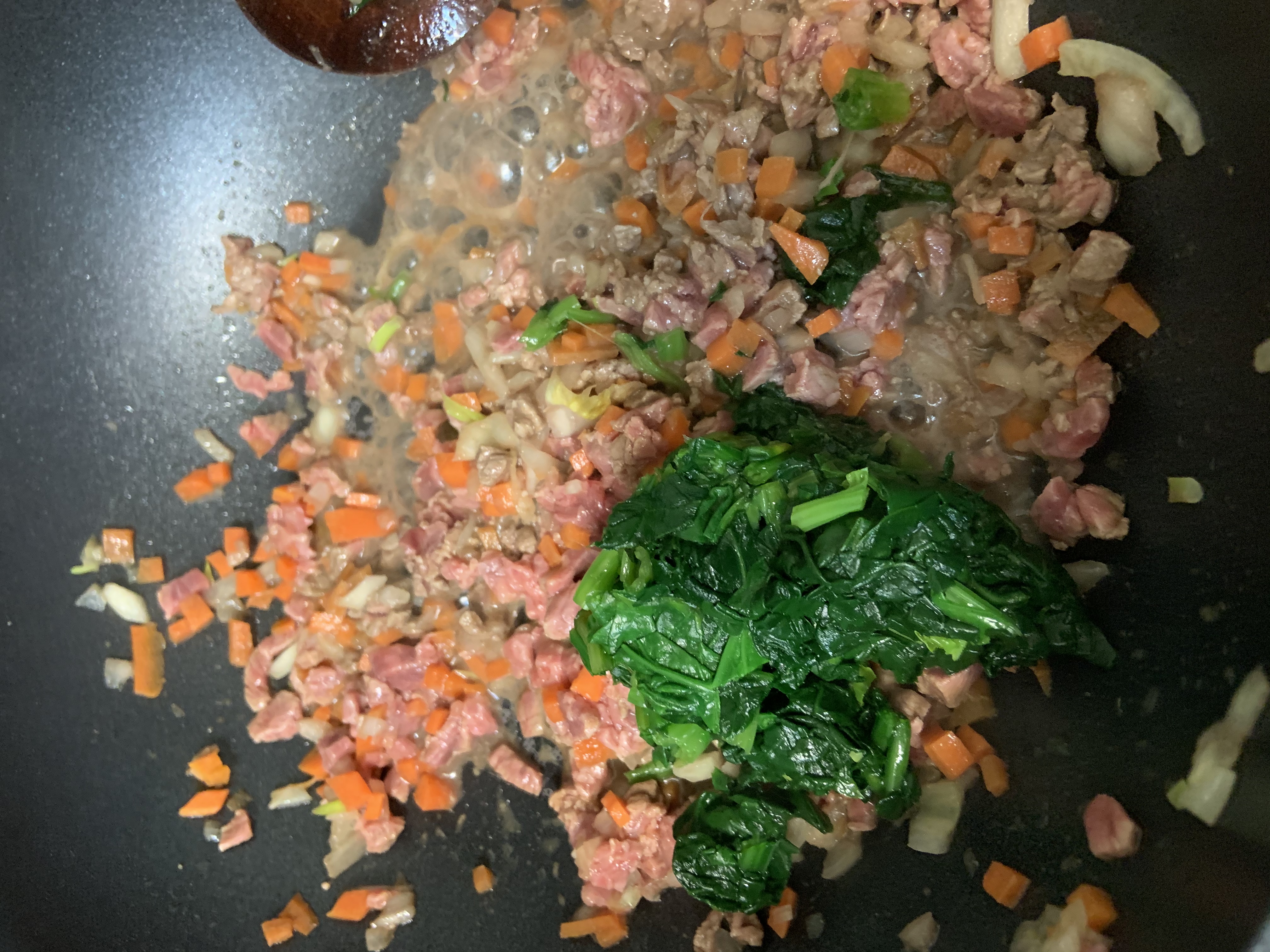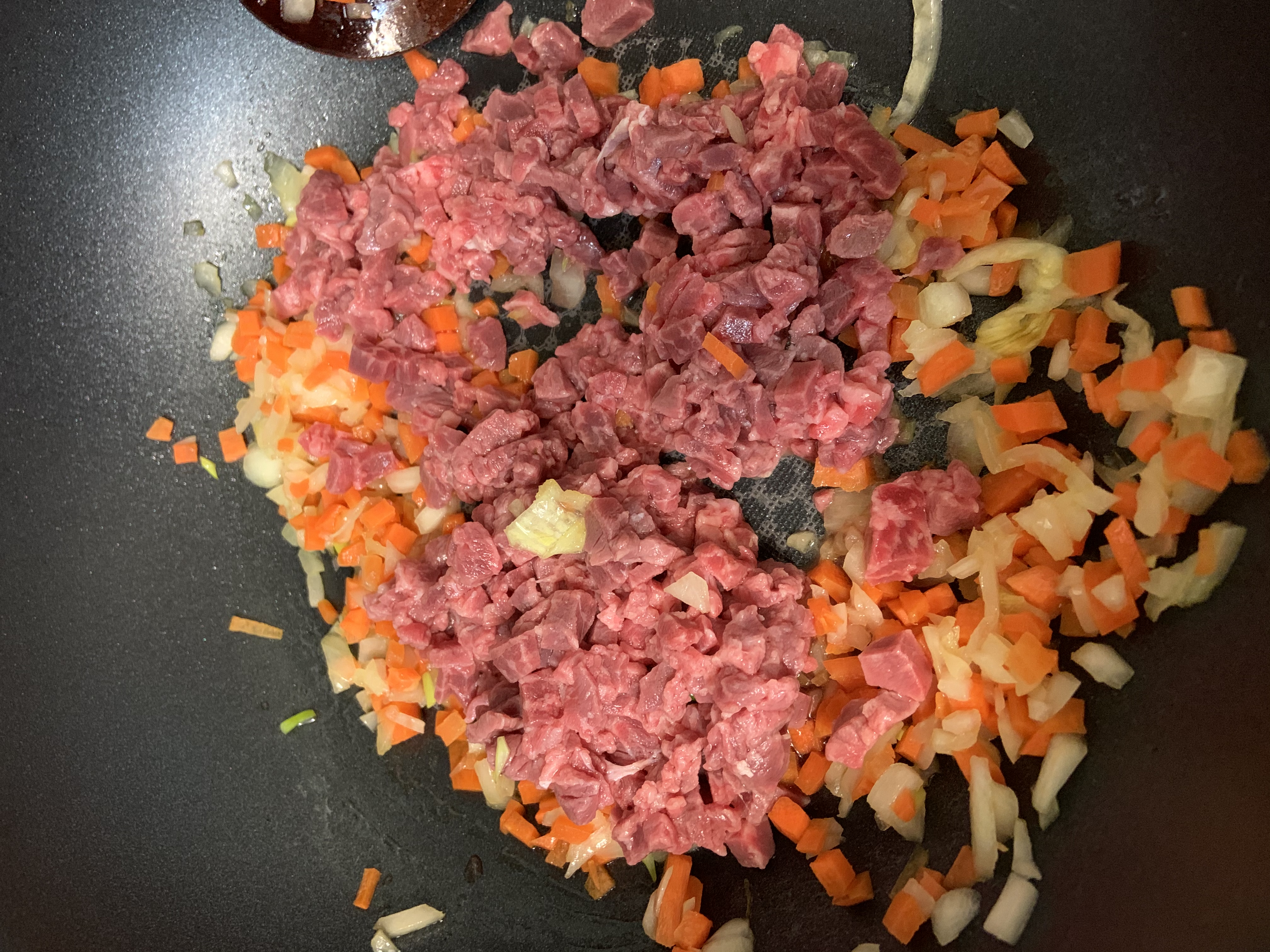 소고기를 넣고 볶다가(엄빠도 안먹은 한우를...아들 넌 좋겠다)