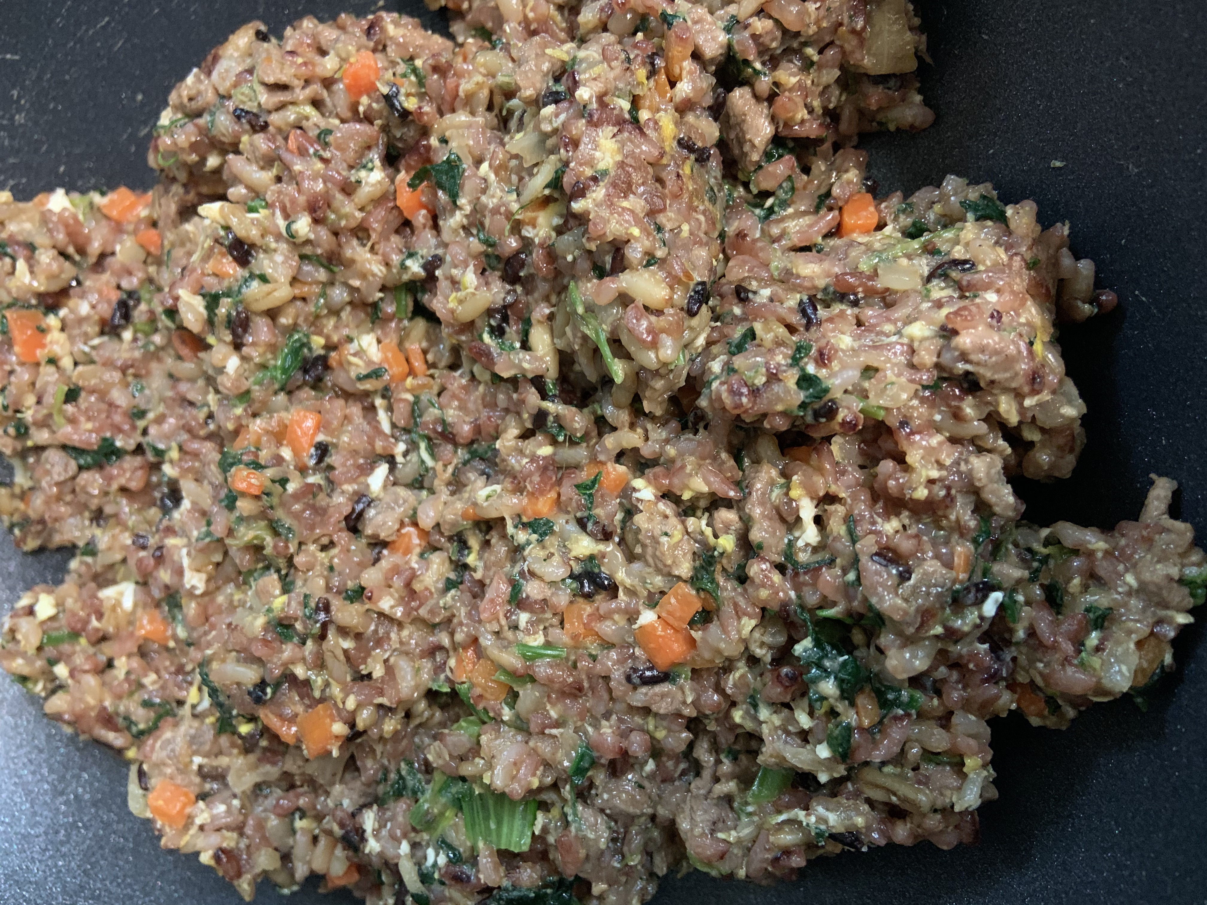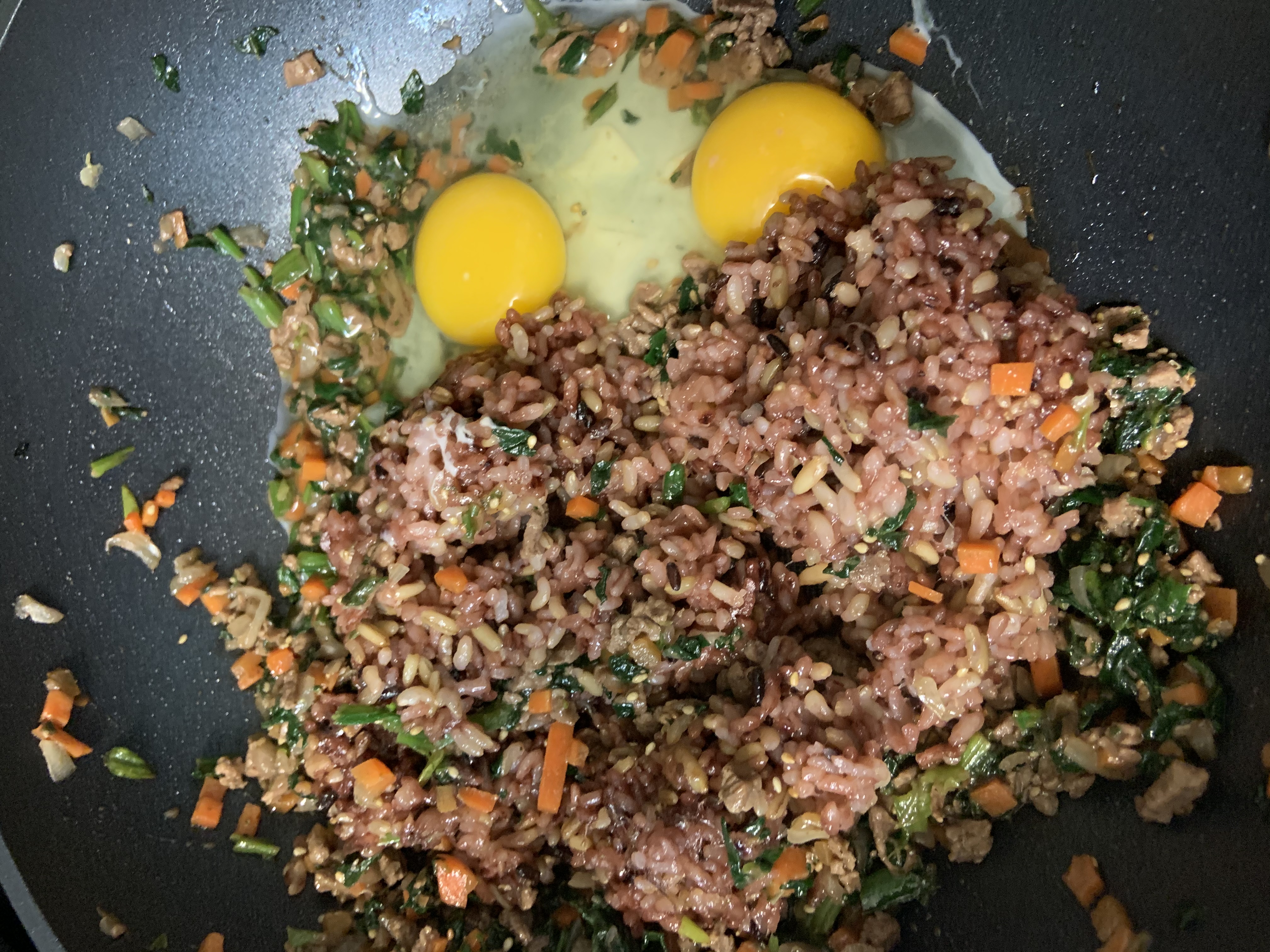 반찬처럼 혹은 덮밥 처럼 먹을수 있게 일부를 통에 덜고 나머지는 엄빠도 함께먹을 볶음밥으로 변화합니다.