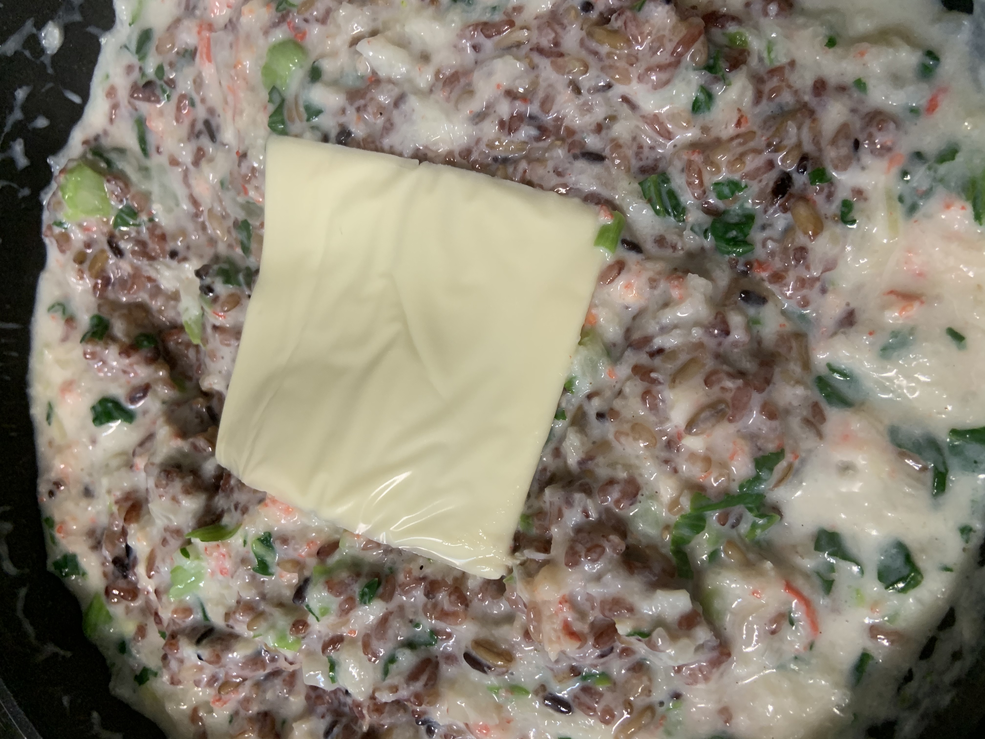 좀더 리조또 스러워보고자 치즈도 한장 넣었어요. 전체양에 비하면 너무 적은듯 싶지만 감자가 걸죽함을 담당하니 치즈는 그저 거들뿐이라...