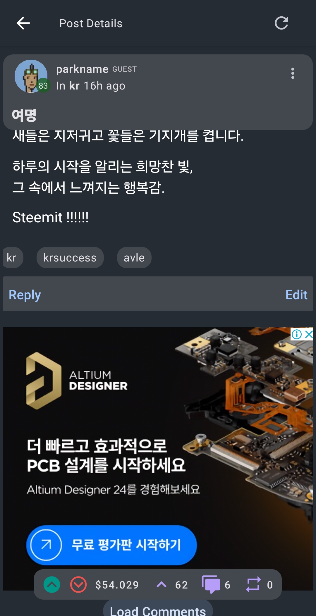 이 앱 스팀프로 댓글 입력창 부근에 구글 애드센스 포맷과 유사한 광고가 표출되네요. 처음 보는 스팀잇 플랫폼 dapp에서의 애드센스 광고가 신기방기 하네요.