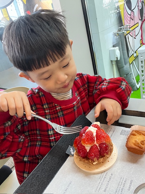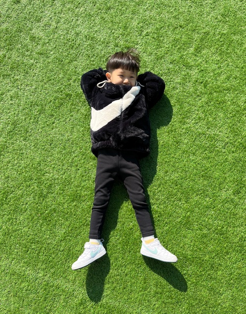 카페 피아크 잔디를 보고 또 아동복 모델(?) 시전 중인 아들