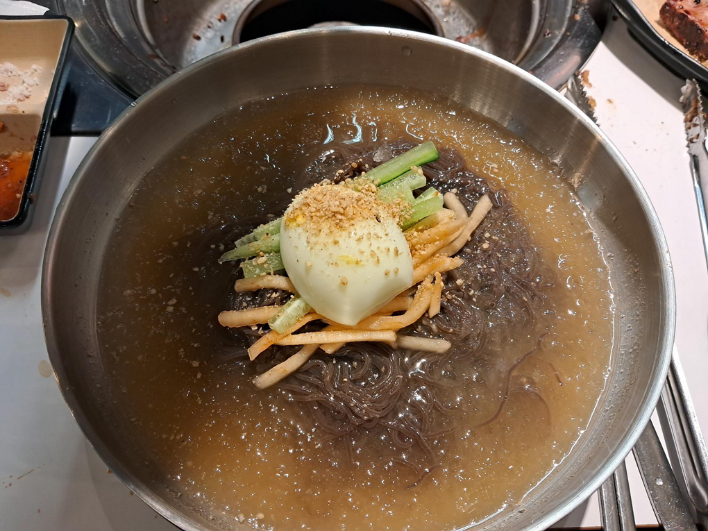 후식으로는 물냉면을 먹었다. 소고기로 배를 채울 수 있는 아주 드문 날이었다.