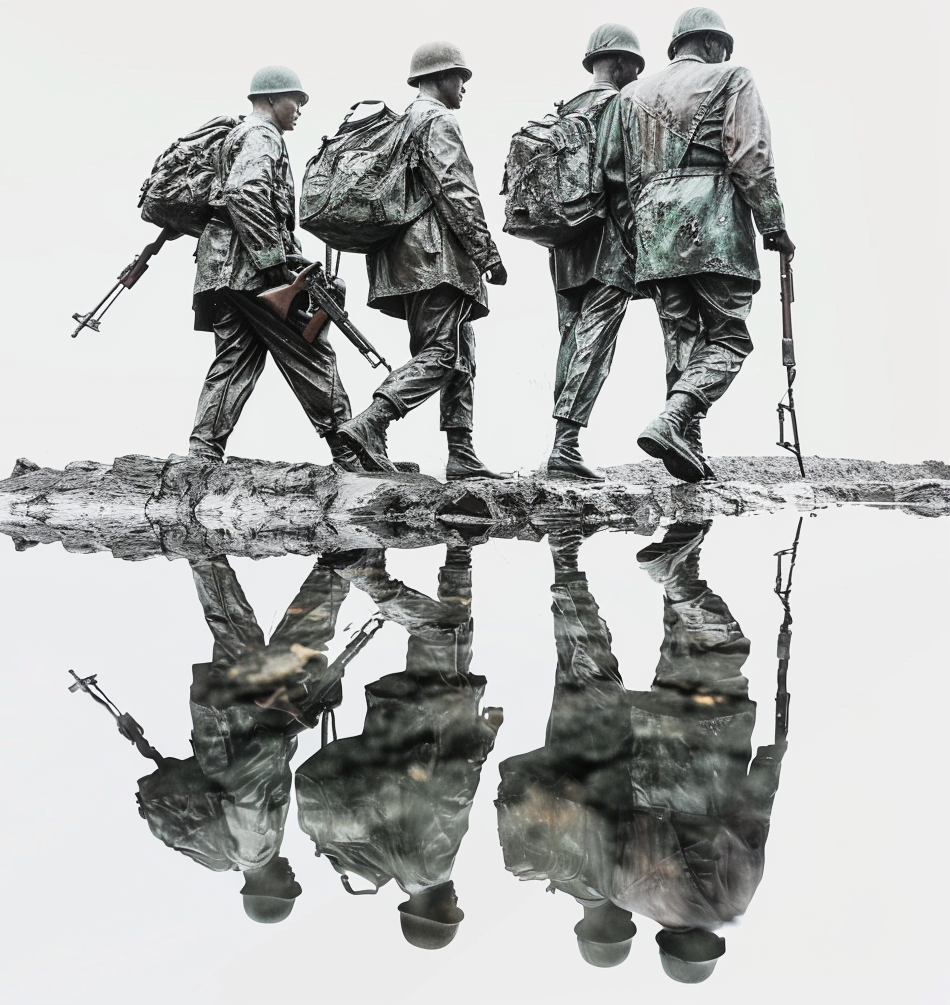 하루는 적의 포화가 쏟아지는 가운데 한 전우가 중상을 입게 되자, 다른 셋은 주저 없이 생명의 위험을 무릅쓰고 그를 안전한 곳으로 옮겼습니다. 그 행동 하나에 '동료를 버리지 않는다'는 영원한 서약이 고스란히 담겨 있었습니다.