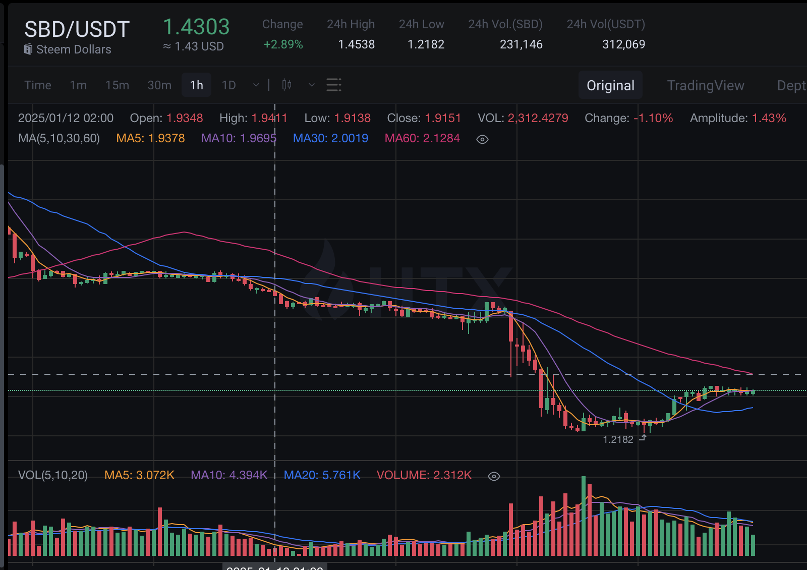 25-1-15 업비트와 HTX 에서 스팀달러 동향