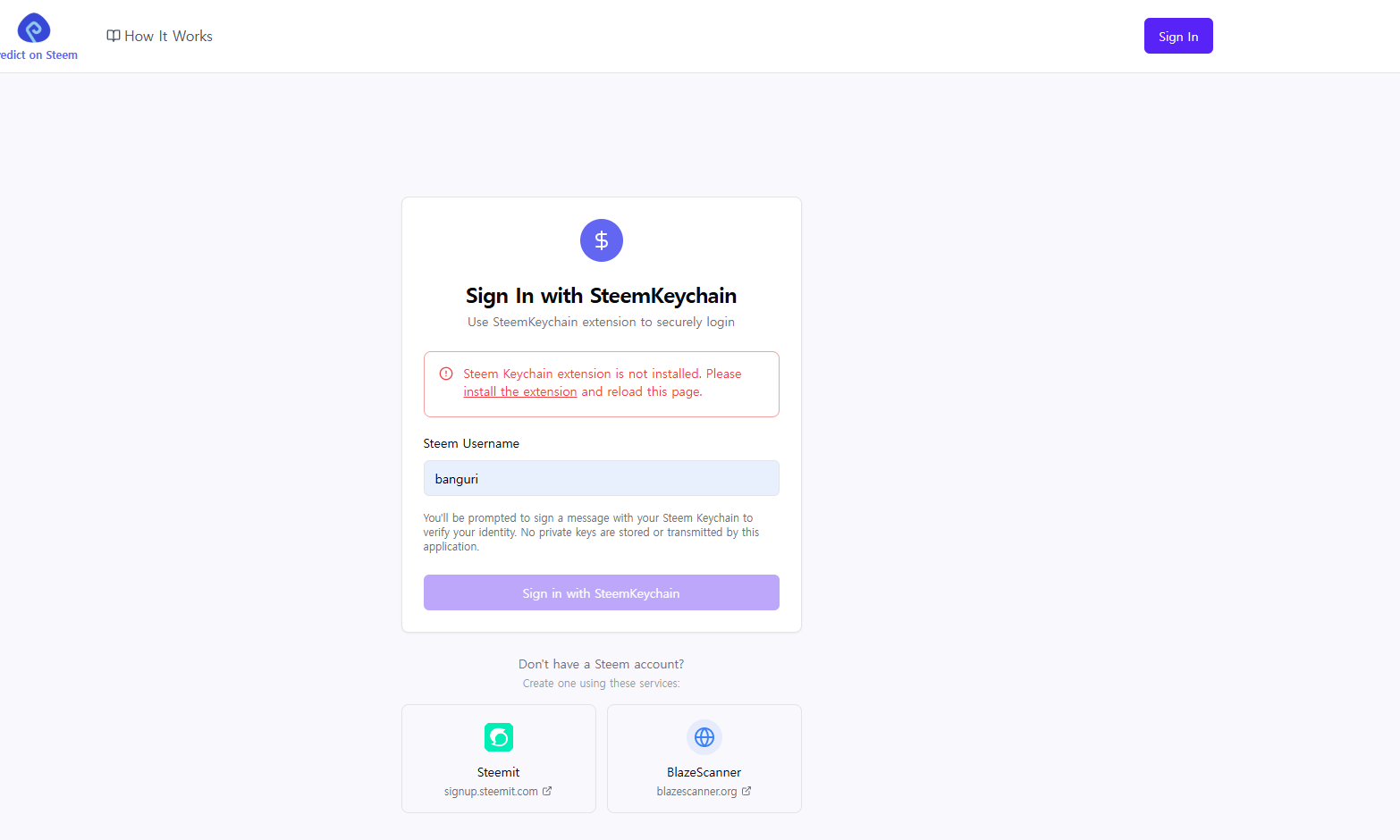 활성 키를 애플리케이션에 노출하는 것은 매우 위험하므로 추천하지 않습니다. 키체인을 설치하셨나요? 설치하셨는데도 키체인이 설치되지 않았다고 나오나요? 웹사이트에 접속해 있는 상태에서 키체인을 열고 로그인 페이지를 새로 고침해 보실 수 있나요? 이 문제는 제가 모든 주요 브라우저에서 테스트했을 때 나타나지 않았습니다.