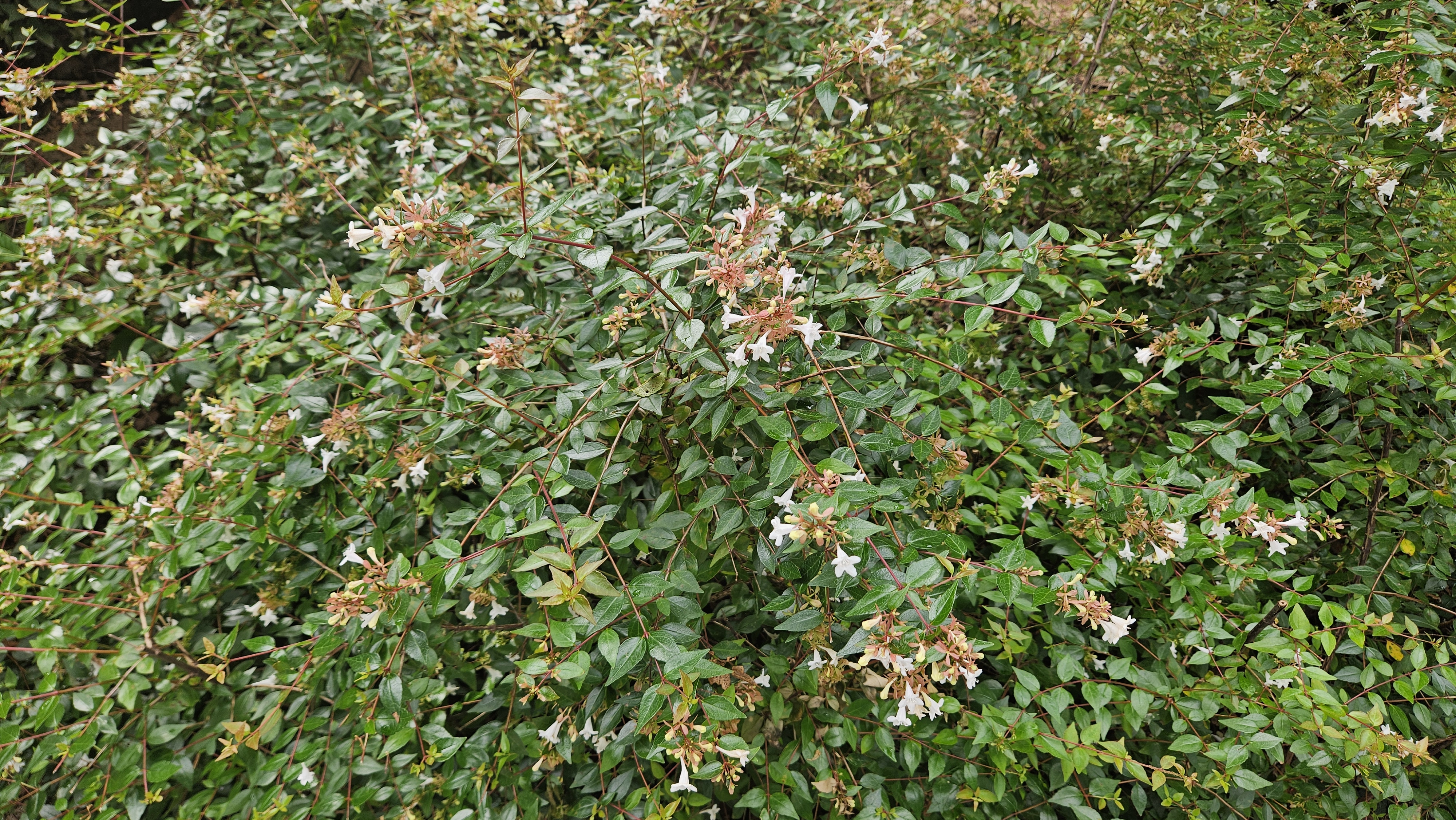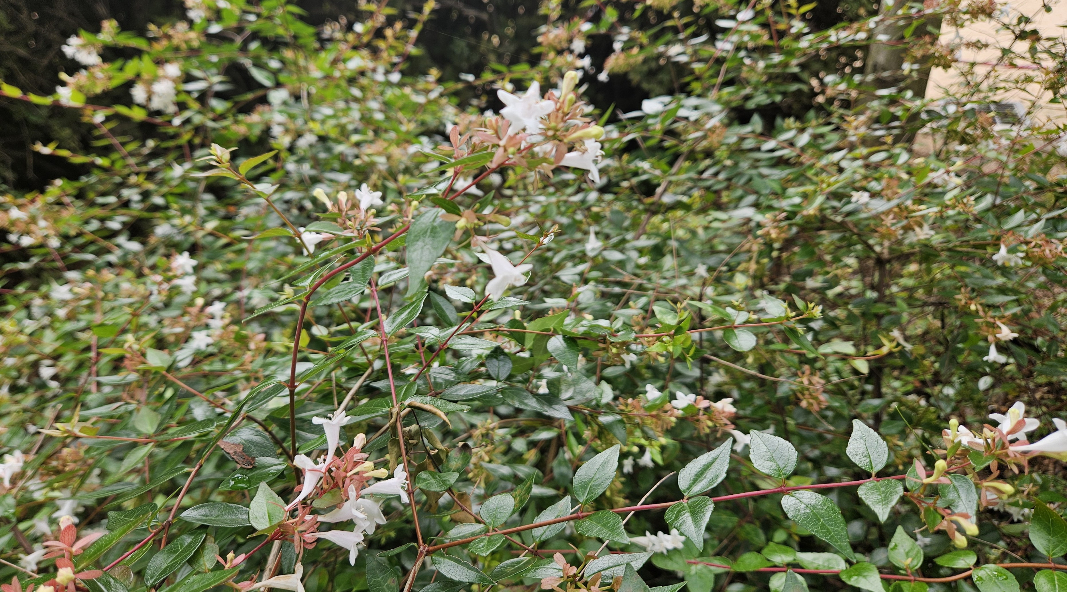 여름철 울타리 등에서 종모양의 조그맣고 하얀 꽃들을 잔뜩 피워내는 생소한 나무를 만났는데 찾아보니 꽃댕강나무라고 하네요.