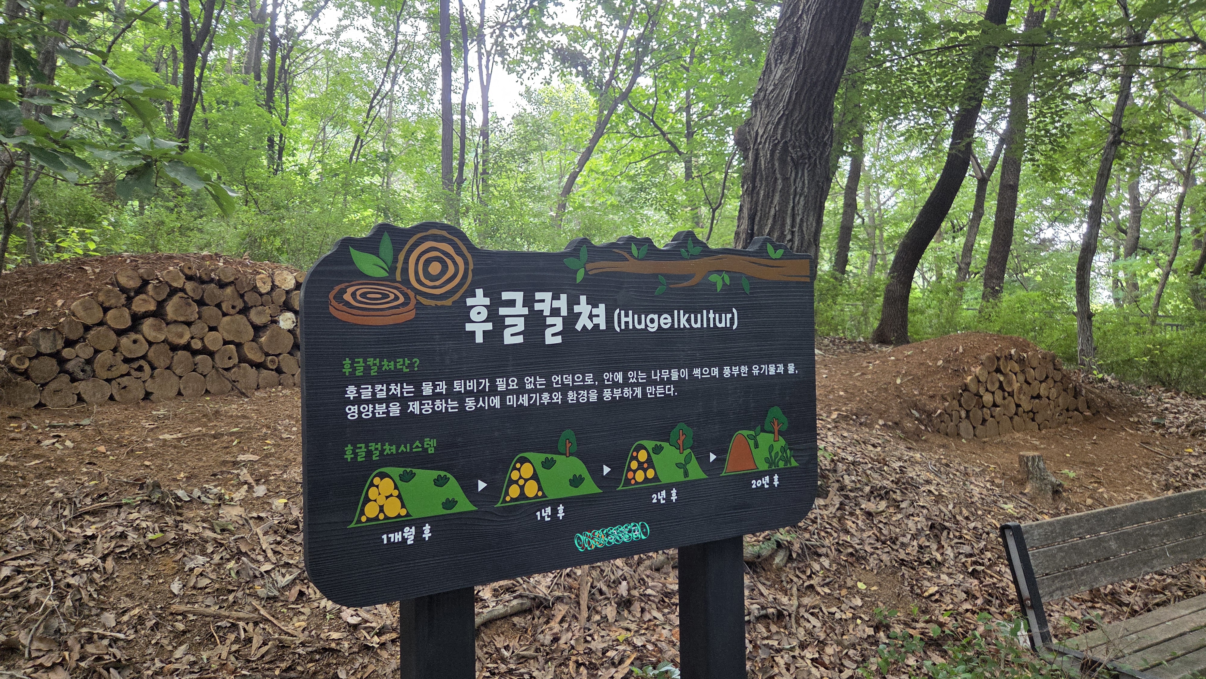 독일어로 언덕문화, 산문화라는 뜻의 후굴컬쳐는 썩어가는 나무를 포함한 유기물을 흙과 함께 쌓아올려 만든 뒤 심는 정원 조성방식으로서 수분유지, 토양개선, 비료공급 등 다양한 이점을 제공하는 지속가능한 정원조성의 유용한 방법이라고 하네요.