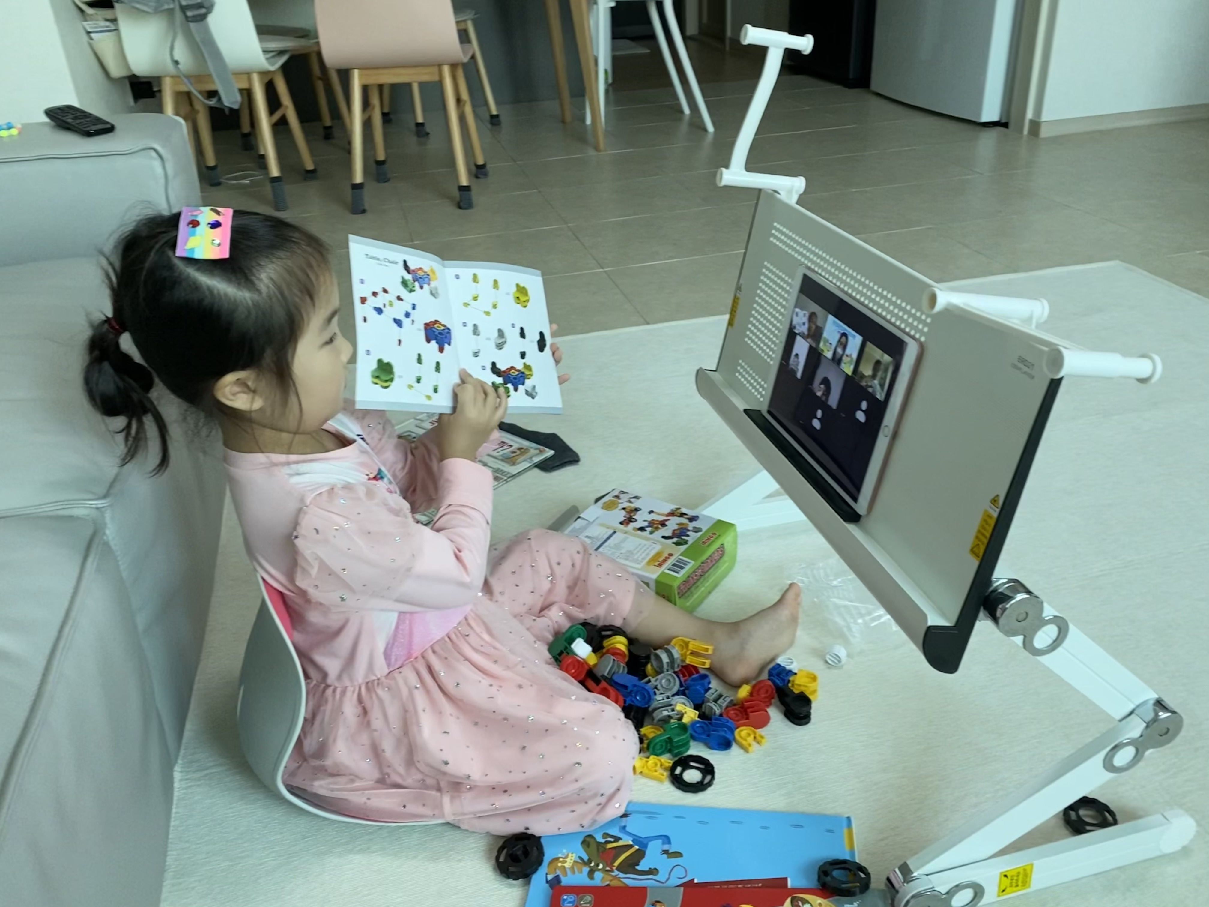 유치원 같은반 친구들과 선생님을 온라인으로 만나서 짧지만 알찬 수업을 하는 시간으로 놀이꾸러미를 받아왔던 물건과 어떤식으로 놀이를 해보고 다음시간 까지 해야 한다는 당부 말과 함께 끝나는 수업이였습니다.