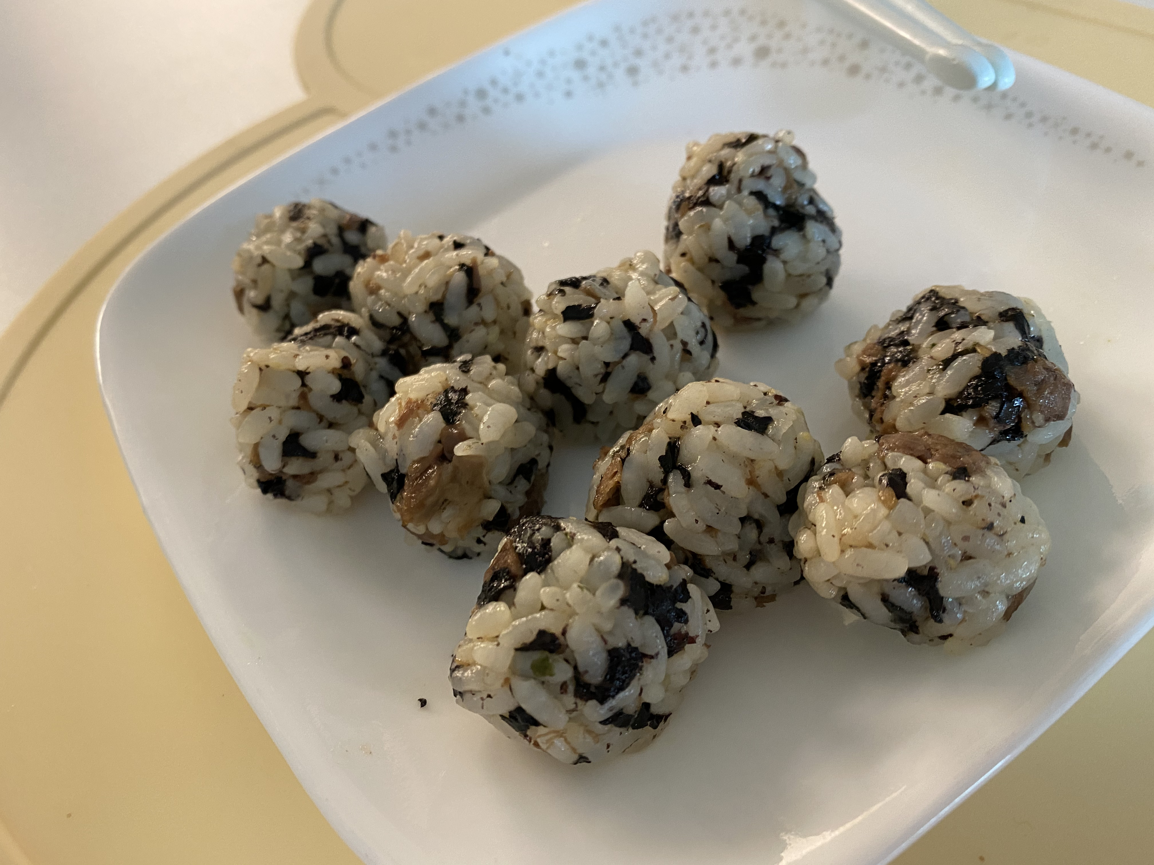 참기름을 넣어서 고소함을 더한 주먹밥 ! 그래도 나름 동글동글 예쁘게 만들려고 노력해서 딸래미를 먹였는데, 워낙 밥을 늦게 먹는 아니라서 좀 빨리 먹어야 할 이유가 있어서 그랬습니다.