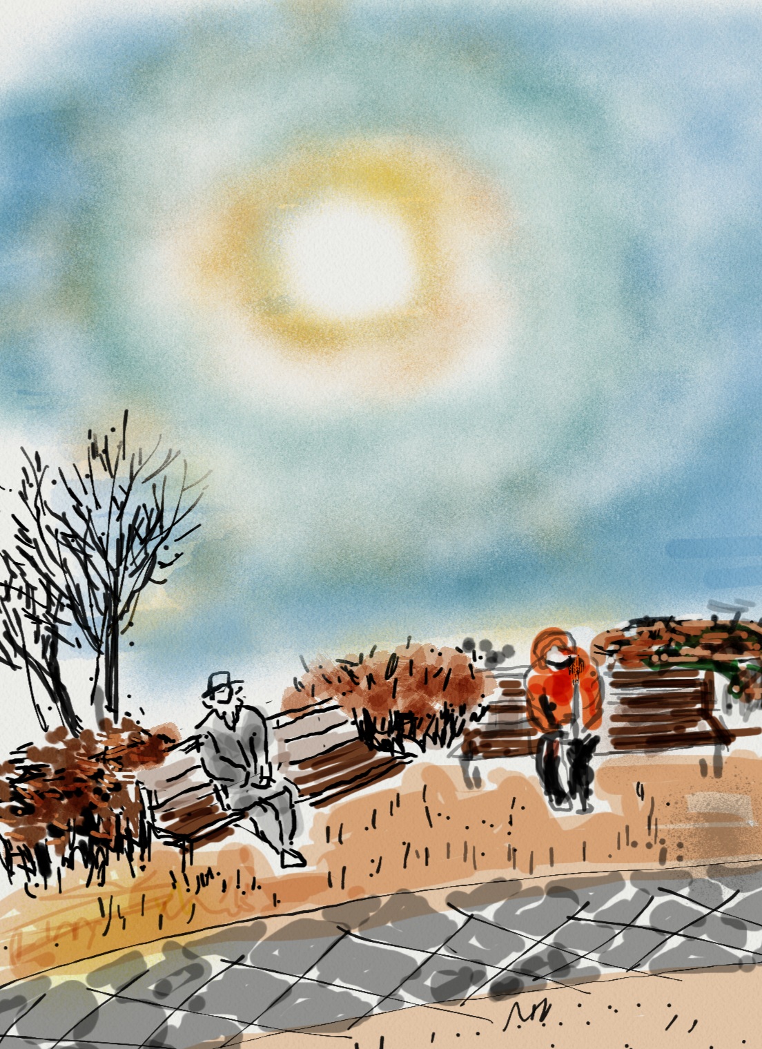 바람이 없어 벤취에 앉아 있어도 춥지 않았다.