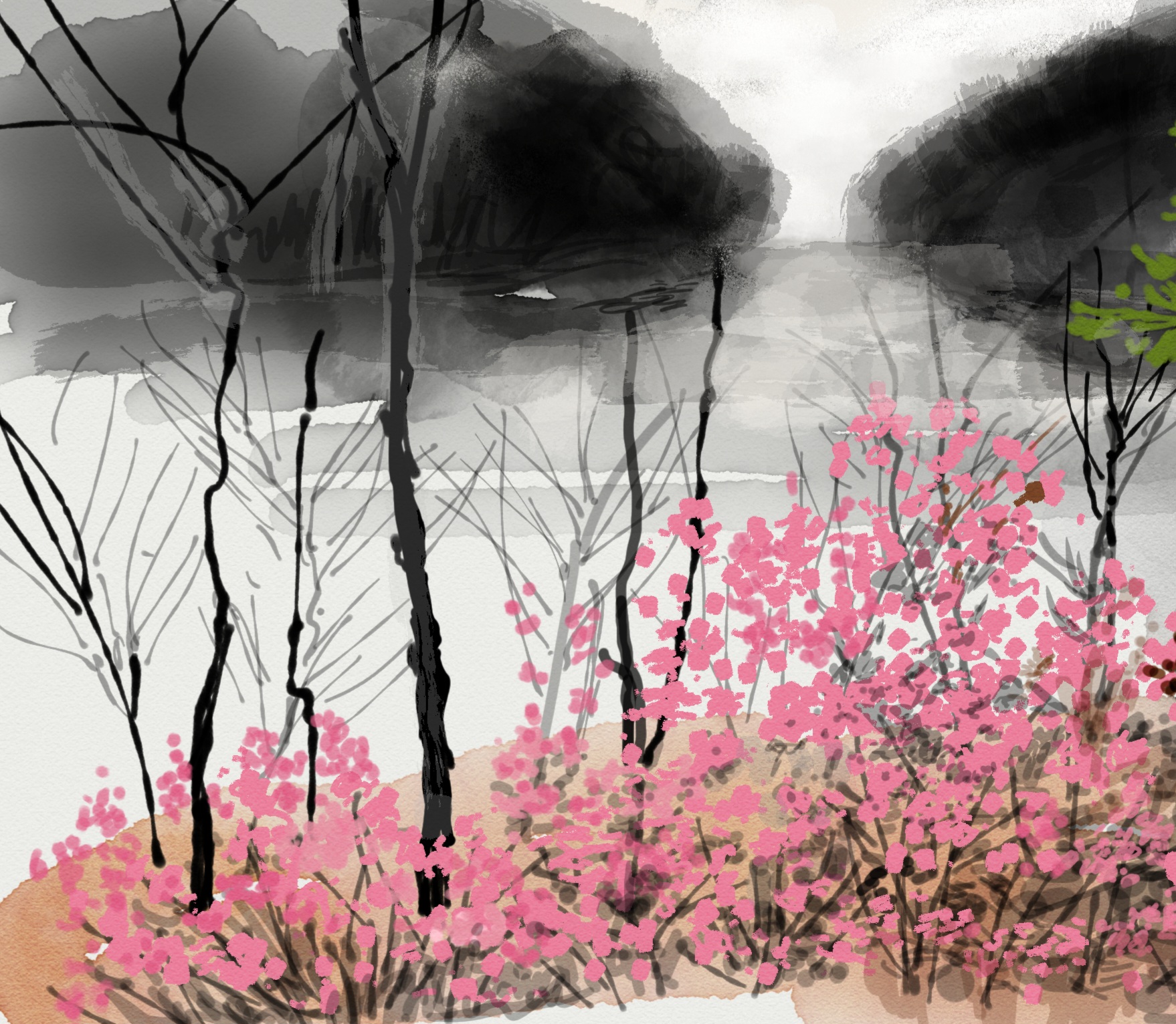 풍경 (진달래가 만발한 호수가)veronicalee (86)in AVLE 일상 • 2 years ago Posted using SteemPro Mobile #avle #digital-art #landscape #azalea #kr