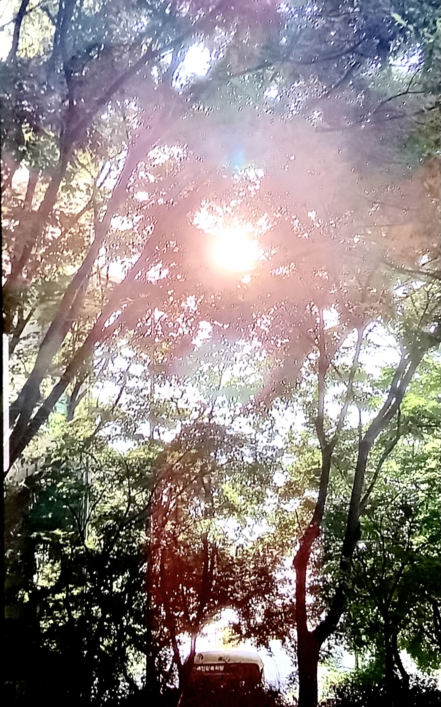 하늘 높이 솟은 나무 그늘 밑에서