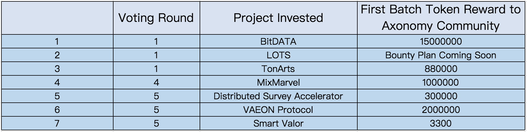 3、这些项目经过打磨完善,可以继续参加Axonomy社区的下一次投票,投资的大门一直向项目敞开。