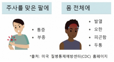 주사를 접종한 어께부위를 누르면 통증이 약간 있지만,