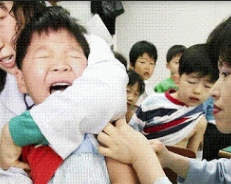 주사맞은 왼쪽어깨근육을 누르면 통증이 있음.