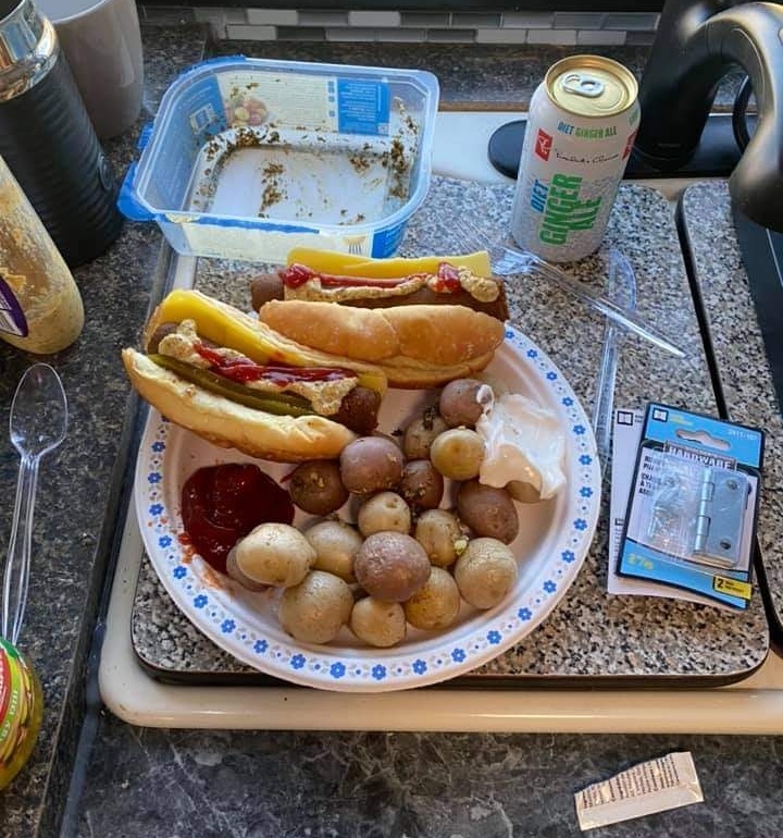 My husband had been laughing too so it helped make me not feel too bad. The it's dish was the worst. The vegan lasagna. Dropped the entire dinner. Lol