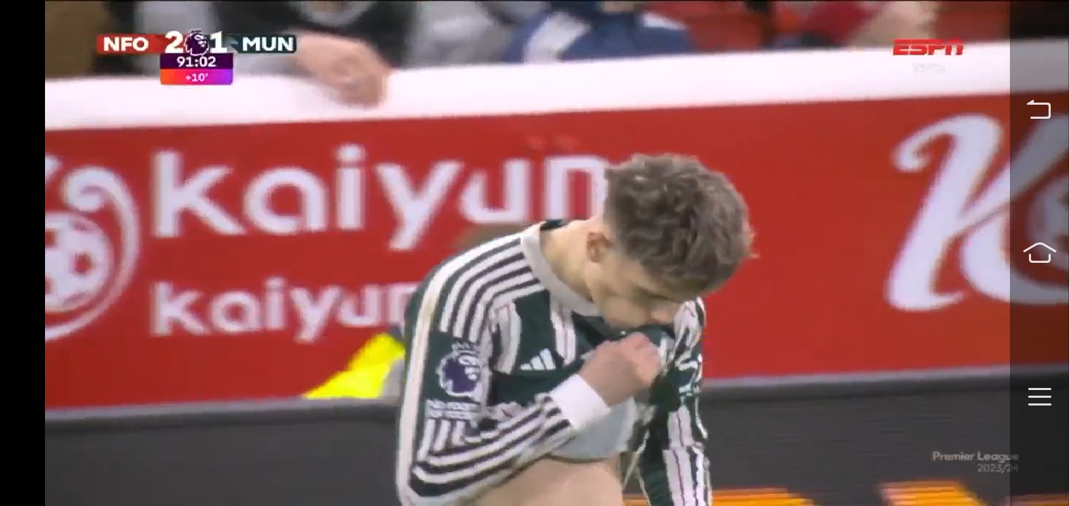 এরপর ম্যাচের ৭৮ মিনিটে তরুন গার্নাচো এর অ্যাসিস্টে গোল করে দলকে সমতায় ফেরায় মার্কাস রাশফোর্ড। ম্যাচে তখন ১-১ গোলে সমতা। কিন্তু সেই সমতা বেশিক্ষণ থাকেনি। ঠিক তার চার মিনিট পরেই এন্টোনি এলেনঙ্গা এর অ্যাসিস্টে গোল করে দলকে আবার এগিয়ে নেয় মরগার্ন হোয়াইট। নটিংহ্যাম ফরেস্ট তখন ২-১ গোলে এগিয়ে যায়। পরবর্তীতে নির্ধারিত সময়ের খেলা শেষ করে অতিরিক্ত ১০ মিনিটেও আর কোন গোল হয়নি। যদিও শেষ দিকে ব্রুনো ফার্নান্দেজ এর অসাধারণ একটা শর্ট সেভ করে নটিংহ্যাম ফরেস্ট এর গোলকপার। ম্যাচে সবচাইতে কম রেটিং ছিল ম্যান ইউ গোলকিপার ওনানার ৫.২। অর্থাৎ সবচাইতে খারাপ খেলেছে সে। অন্যদিকে ৮.৫ সর্বোচ্চ রেটিং নিয়ে ম্যাচসেরা হয়েছে নটিংহ্যাম ফরেস্ট এর এন্টোনি এলেনঙ্গা। এই নিয়ে এই সিজেনে লীগে ২০ ম্যাচে ১০ জয়ের বিপরীতে ৯ হার রয়েছে ম্যান ইউনাইটেড এর। এরিক টেন হ্যাগ এর চাকরি হয়তো আর বেশিদিন নেই।