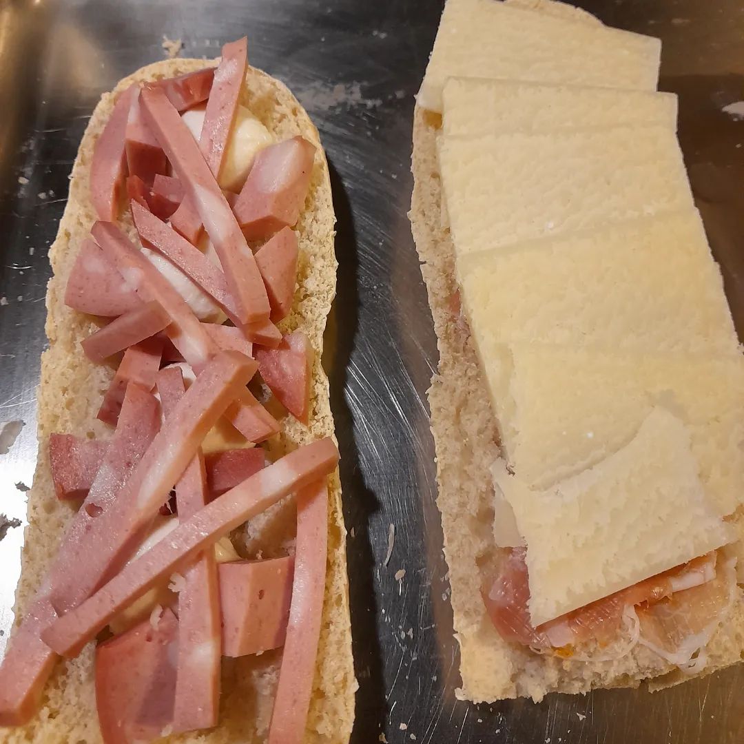 - Baguette with mozzarella cheese and sausage