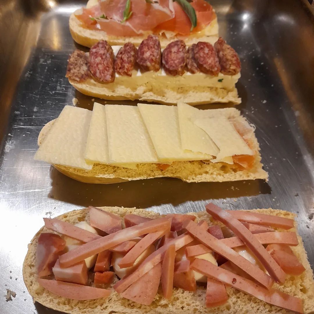 - Baguette with ricotta pesto and walnuts, ham and parmesan cheese