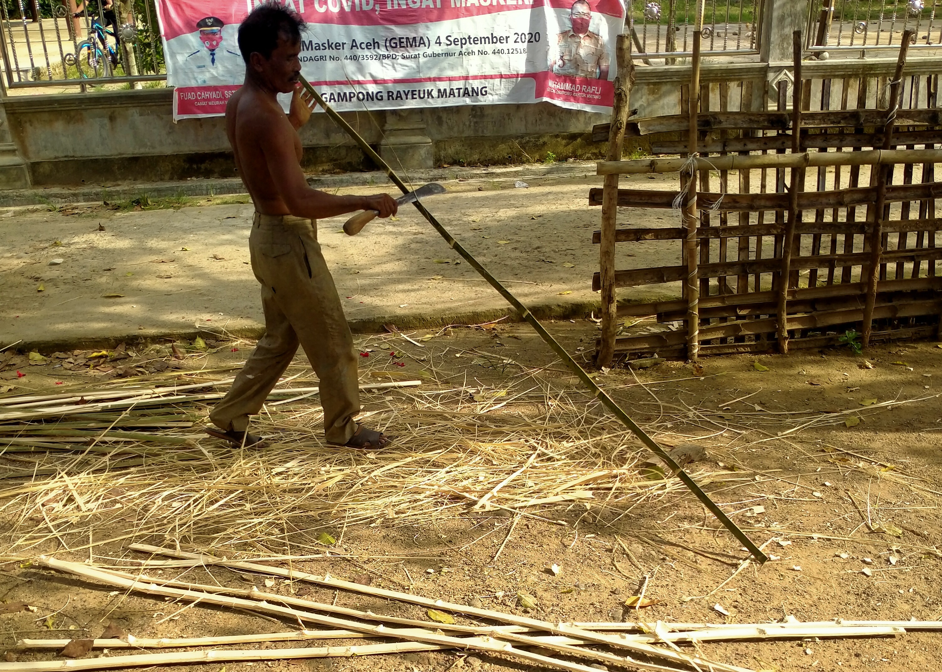 Membuat pagar bambukilang (62)in #bambu • 5 years ago Paman sedang sibuk membersihkan bambu untuk membuat pagar rumah, banyak nya tanaman yang sudah di makan oleh binatang liar kambing lembu.