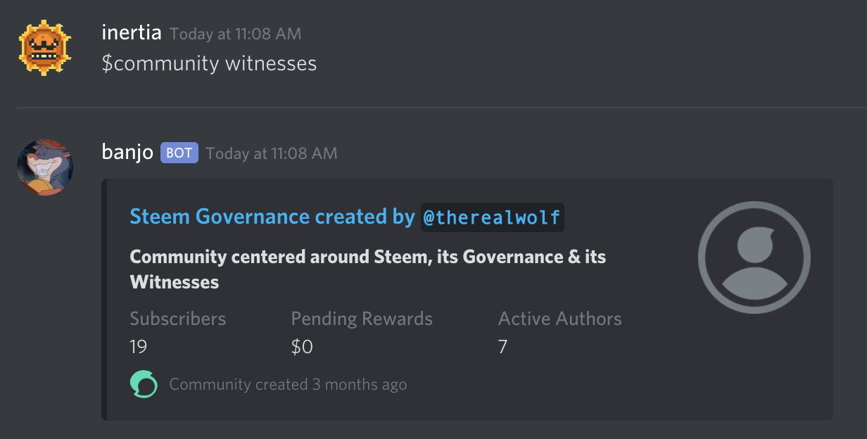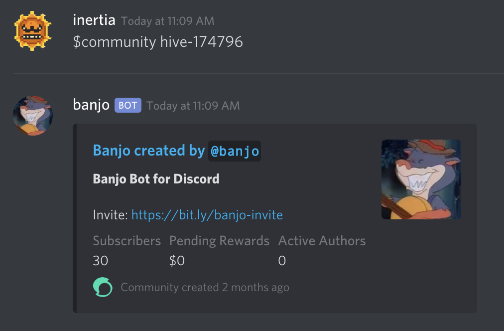 Similar to the $hive command, this will allow you to search for a community and get details about it. The intent is to show a single community with full detail, rather than a list.