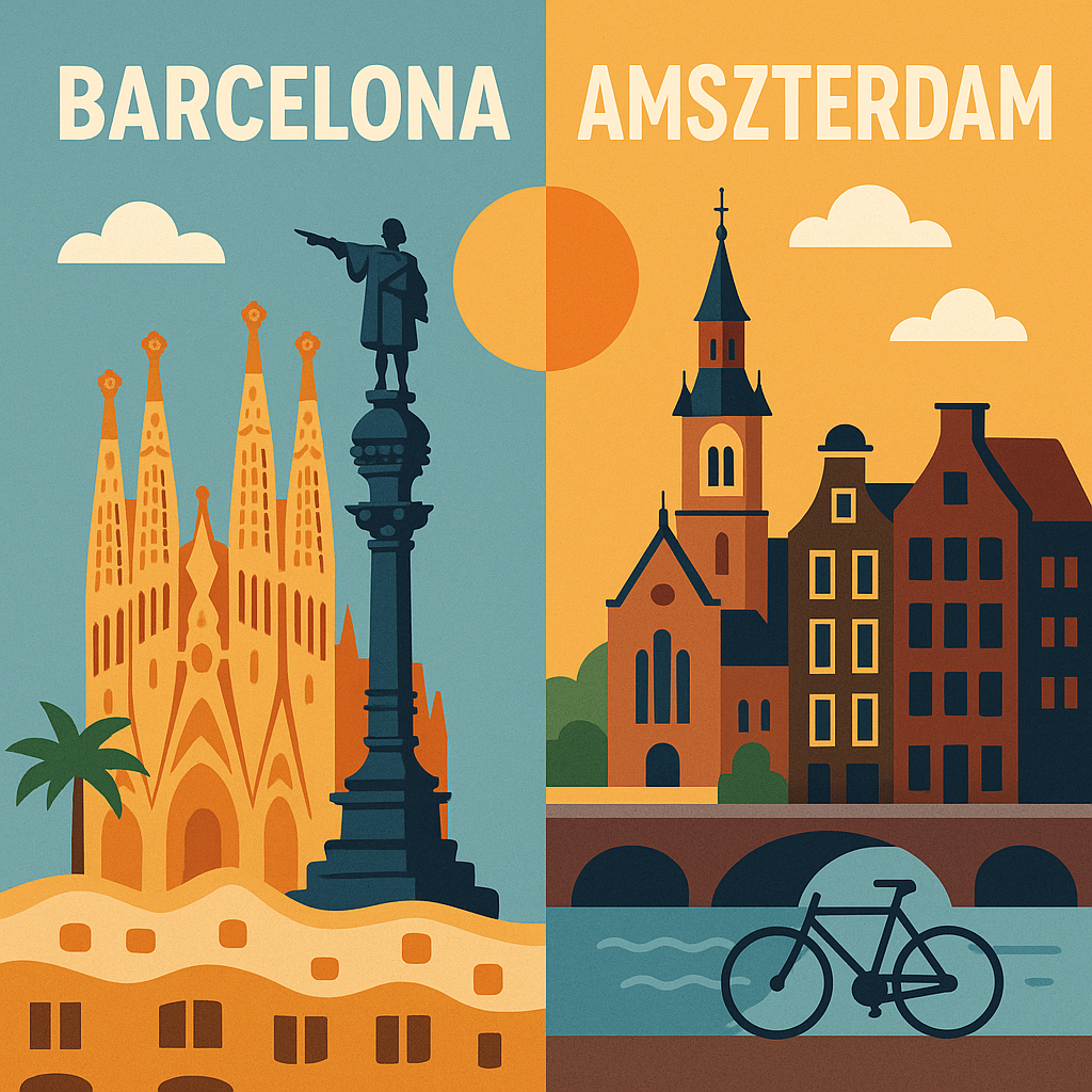 Ebben a cikkben két ikonikus várost vetünk össze: a napsütötte, mediterrán Barcelonát, és a csatornákkal szabdalt, bringabarát Amszterdamot. Megnézzük, milyen élményt nyújtanak ezek a városok, ha egy helyi idegenvezetővel fedezed fel őket – legyen szó építészetről, hangulatról, árakról vagy gasztronómiáról.