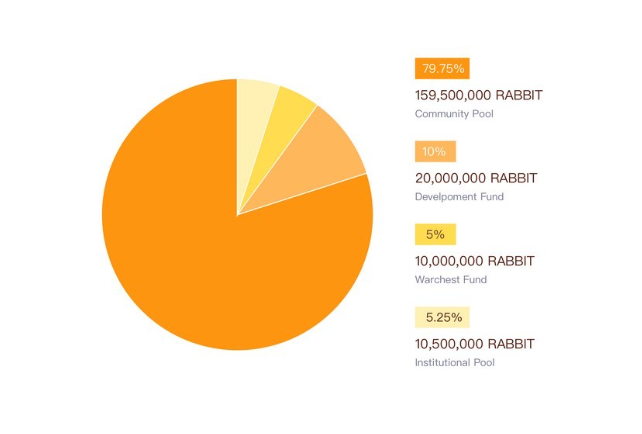 Provide 5.25% investment quota for well-known institutions and investors. After the completion of the investment, 245,000 RABBIT will be released every 7 days, and 10,500,000 RABBIT will be released within 300 days (about 10 months). Specific time to be determined, please pay attention to the follow-up announcement.