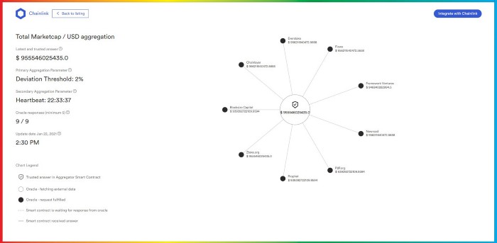 Crypto Market Cap: Provide information about the cryptocurrency market capitalization. Data is provided with Cainlink oracle nodes.