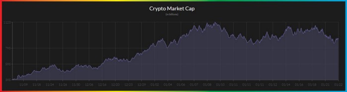 - The Crypto Maket Cap chart exhibits the total cryptocurrency market’s history since the Base Protocol’s launch date.