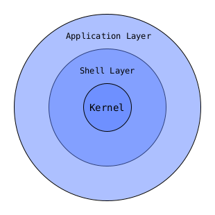 Let's start with the black space where we all have been, the shell. Unix systems have revolutionized how we think about computing those days. Monolithic machines made for single purpose computing have been replaced with reliable small layers [fig1], one of witch is the shell. It consists of small programs, usually solving single task. The most popular shell those days is bash, so this is what we gonna play with today.