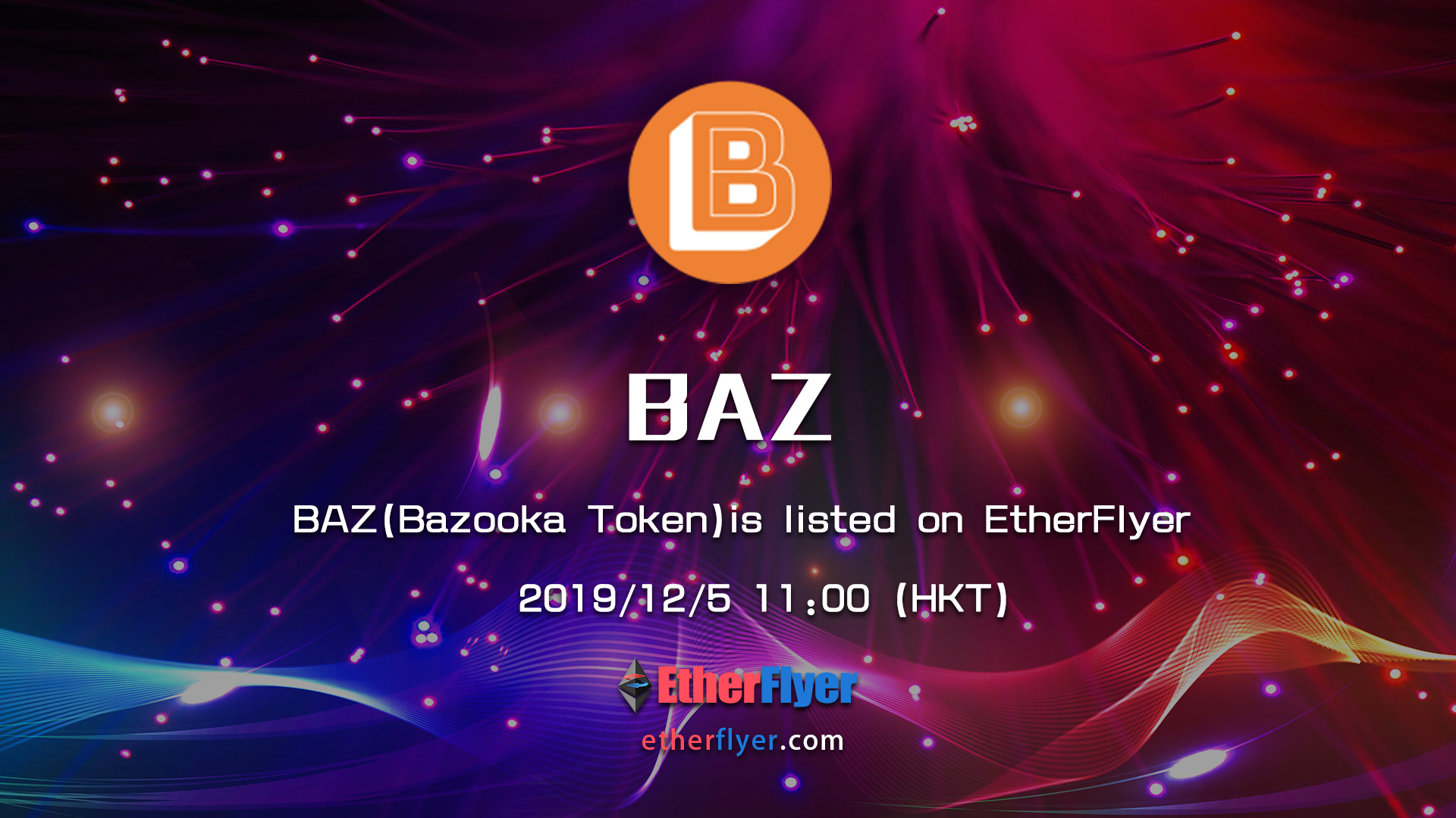 BAZ/ETH trading pair will be available on EtherFlyer and open trading market at 2019/12/5 11:00 (HKT);