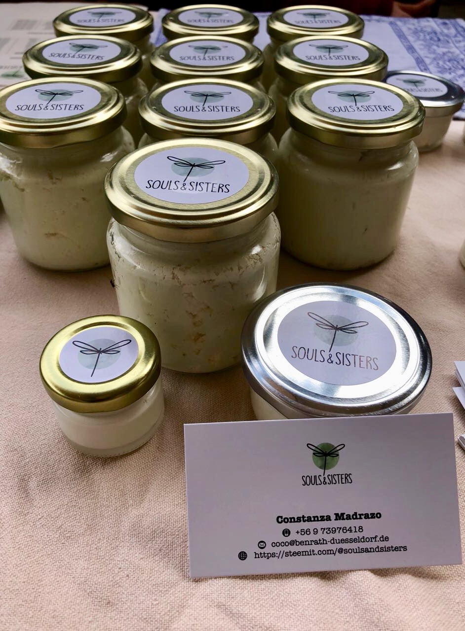As our primary product, we offered our ** Self-made Body Lotion** Cacao Butter + Karité Butter + Sweet Almond Oil - RECIPE SOON TO BE POSTED AT @soulsandsisters -