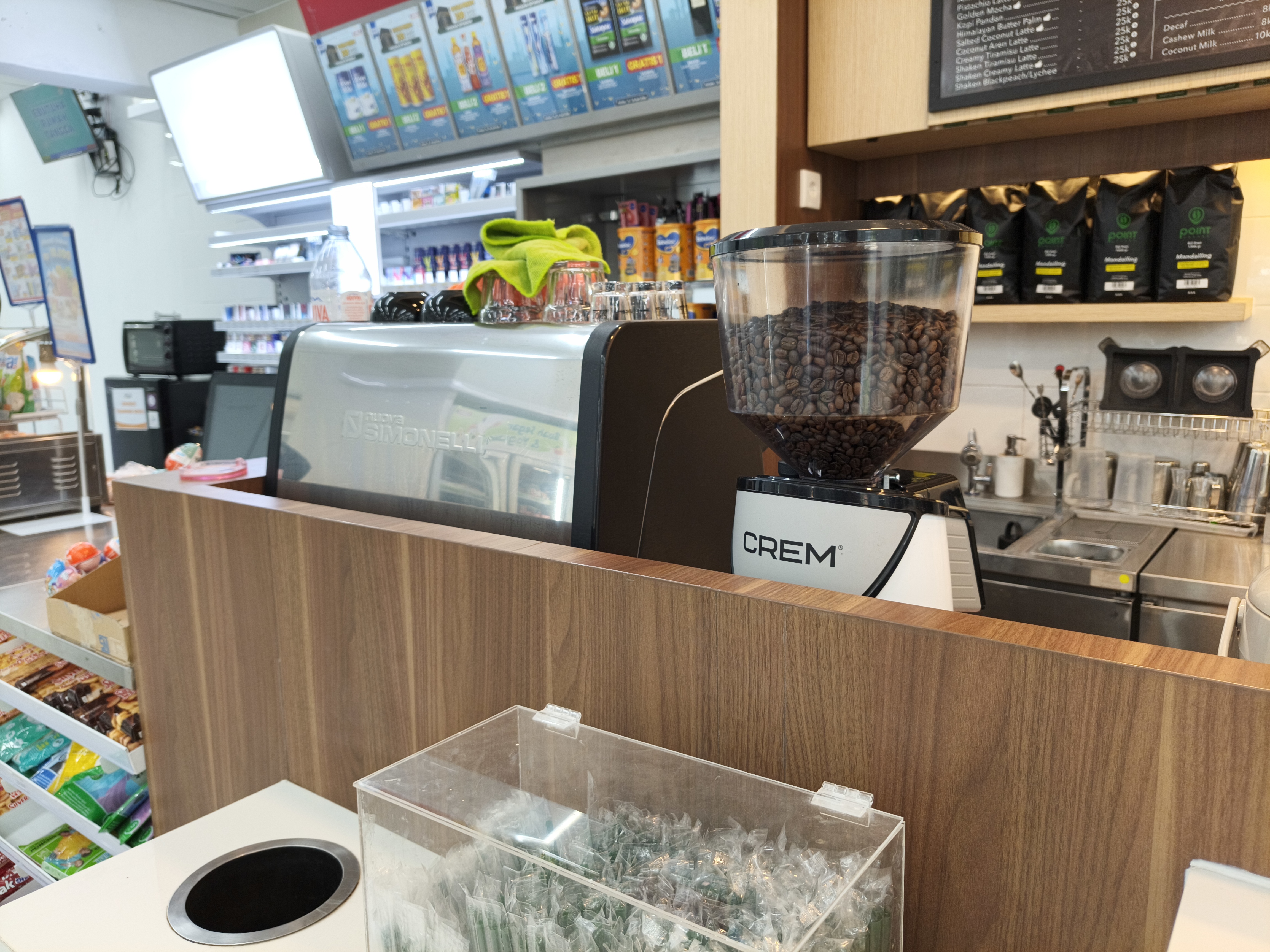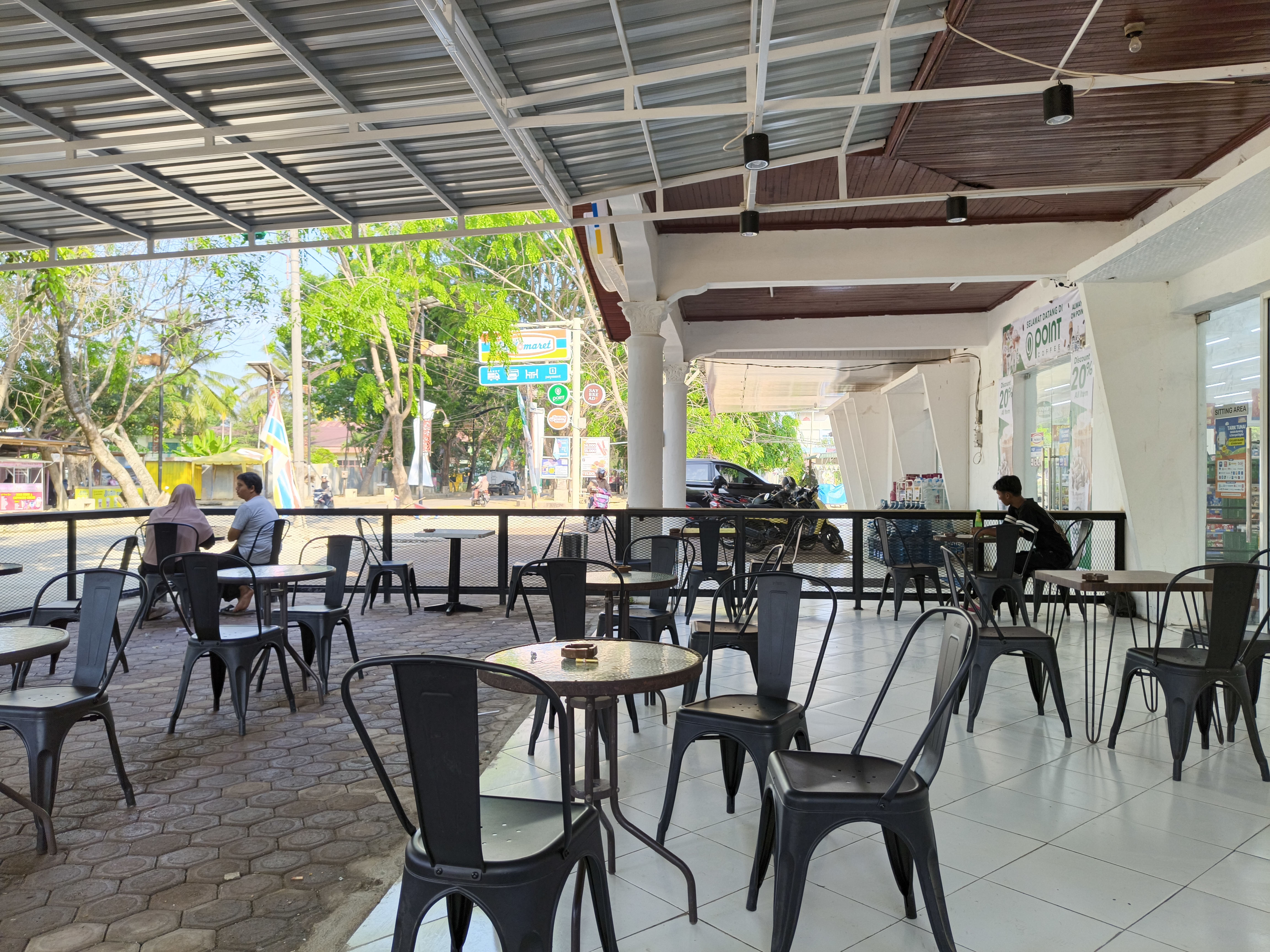 With its neatly arranged indoor and outdoor seating areas, Indomaret Cut Nyak Dhien deserves to be called a great spot for a snack, because in addition to providing various kitchen staples such as rice, cooking oil, eggs, and more, this mini-market offers added value with a menu of coffee and tea beverages as well as warm bread.