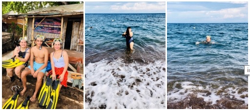 We rented snorkeling gear for Php300 ($6) and walked to the site- its a 10 minute walk lang naman along the shore. But you also have an option to take tricycle – on our way back to the resort we rented a tricycle kasi we’re tired na -its a bit expensive Php 70 ($1.50) for the three of us- parang special trip – ganon pero malapit lang talaga.