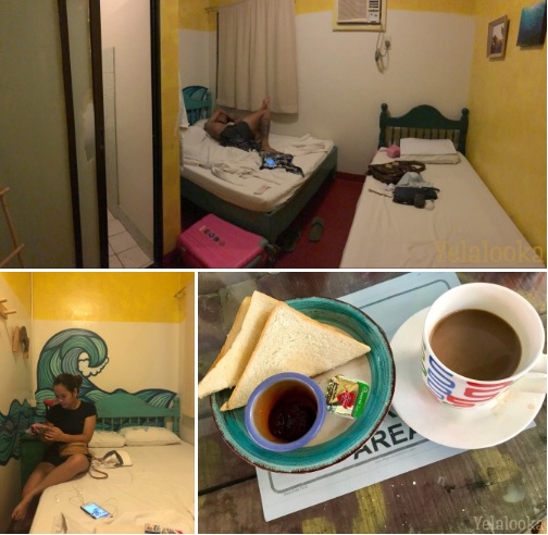 Our room is good for 3 Pax for Php 1650. Cheap. Right? Aircon, hot and cold shower and with free light breakfast. Well in our case we paid an extra Php 500 for a late checkout but still for a room good for 3- this is considered as cheap. 🙂