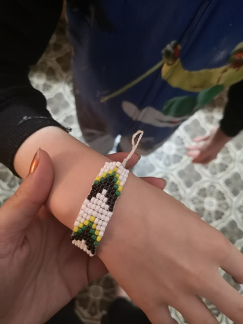 The most difficult part for me was tying off when finished. I wasn't quite sure how to do it and youtube videos shown all sorts of ways. For some reason my first and last row were loose, like the row of beads were moving more compared to the rest so there may be something I'm missing when finishing it. I made this traditional bracelet for my son so I just braided the threads together and tied them together so he could slip it on and off.